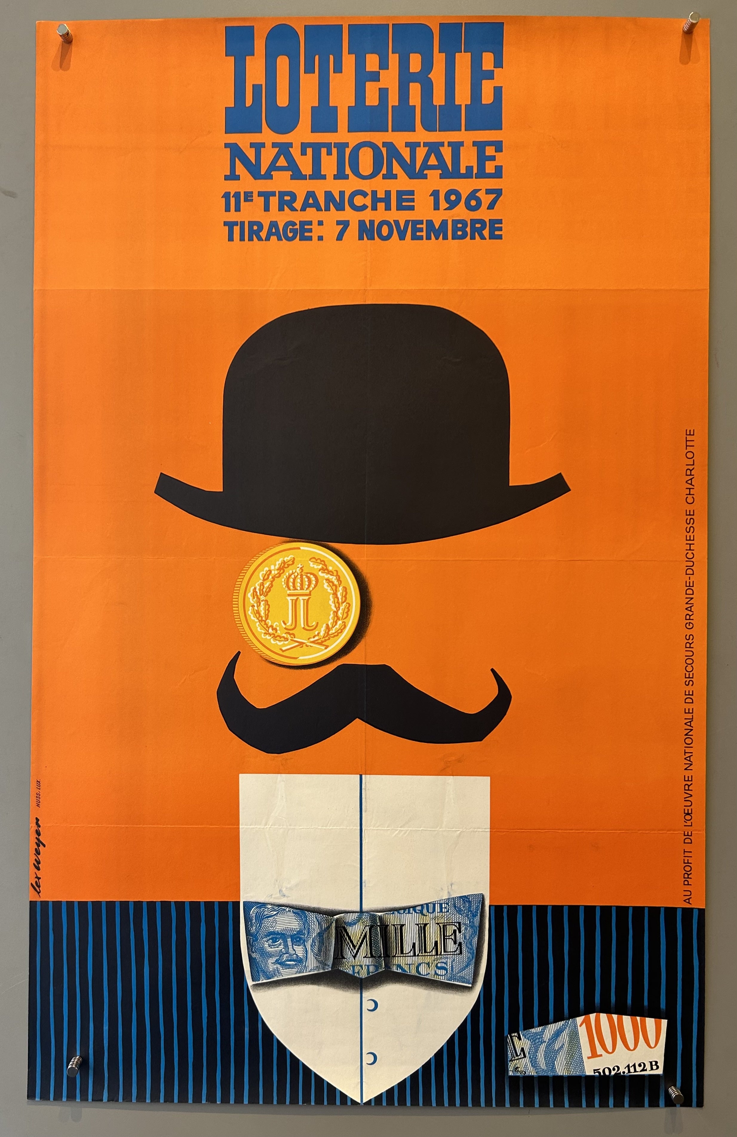 English Translation: "National Lottery / 11th tranche 1967 drawing: November 7 / for the benefit of the national relief organization Grand Duchess Charlotte"