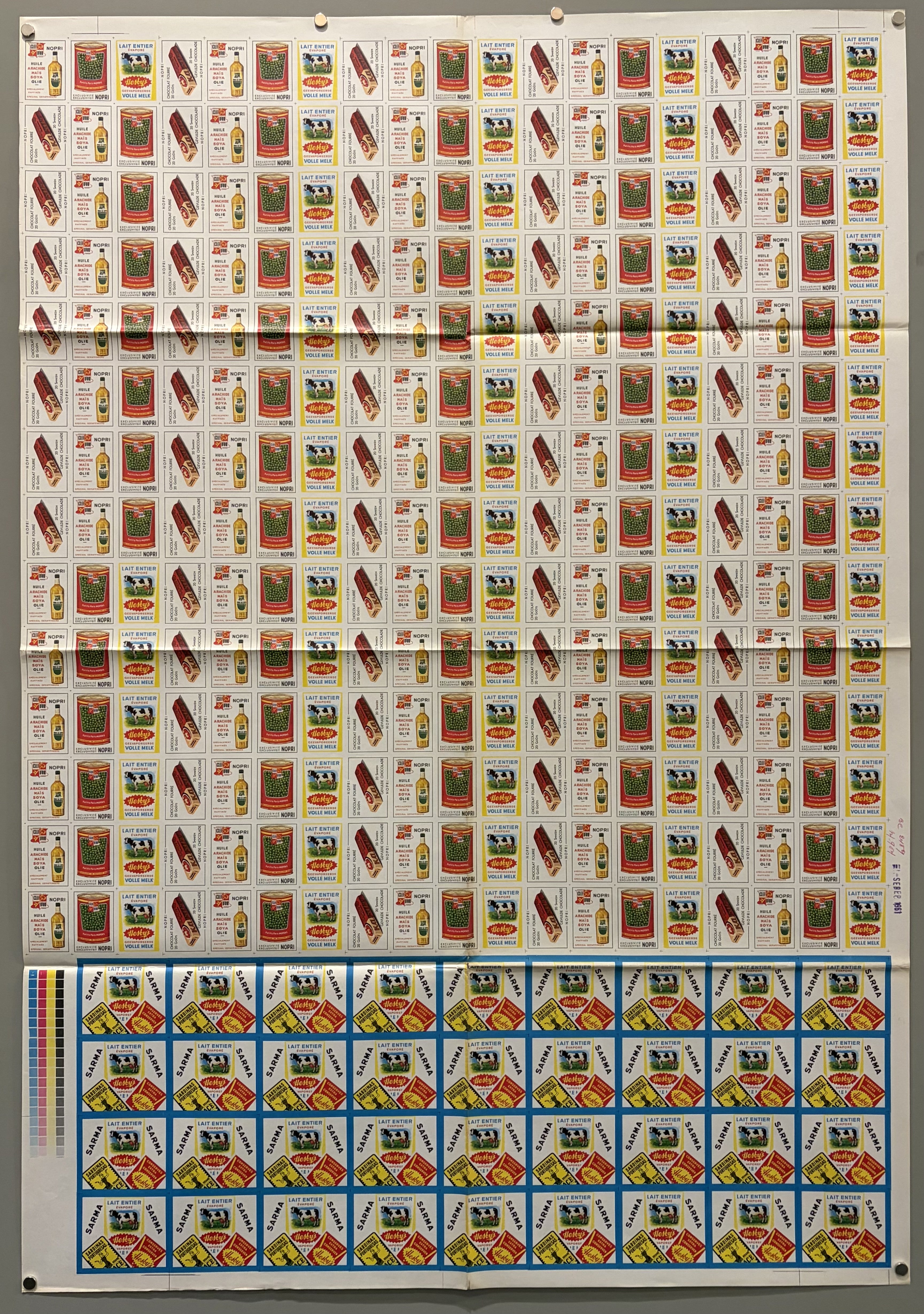 A sheet of uncut vintage food label/collective stamps. A rare and special example of mid-20th-century advertising ephemera.