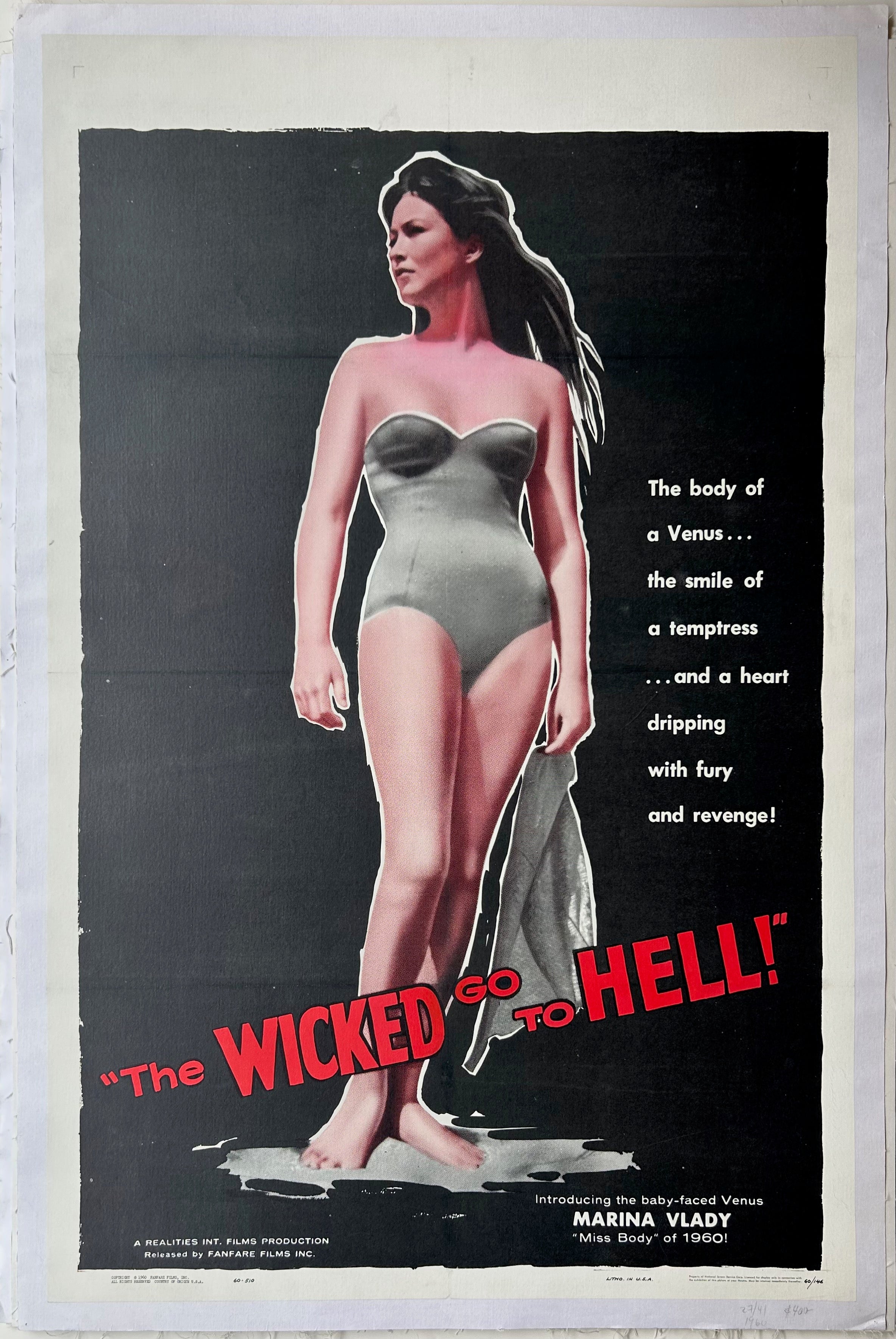 The Wicked go to Hell vintage film poster. The body of venus, the smile of a temptress, and a heart dripping with fury and revenge.
