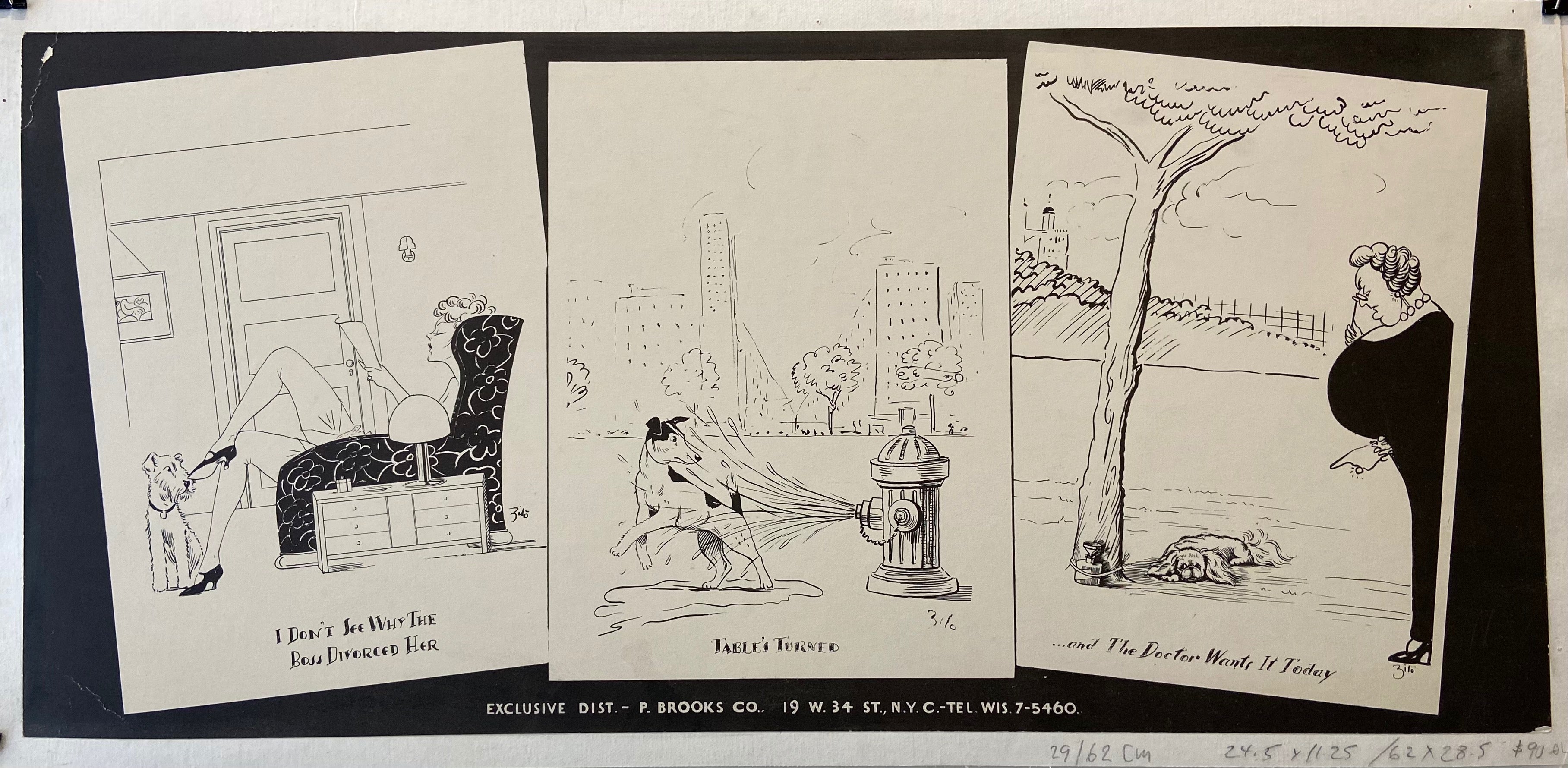 Original vintage cartoons all centered around dog shenanigans in New York City. A clever print that is sure to get a good laugh out of any dog lover!