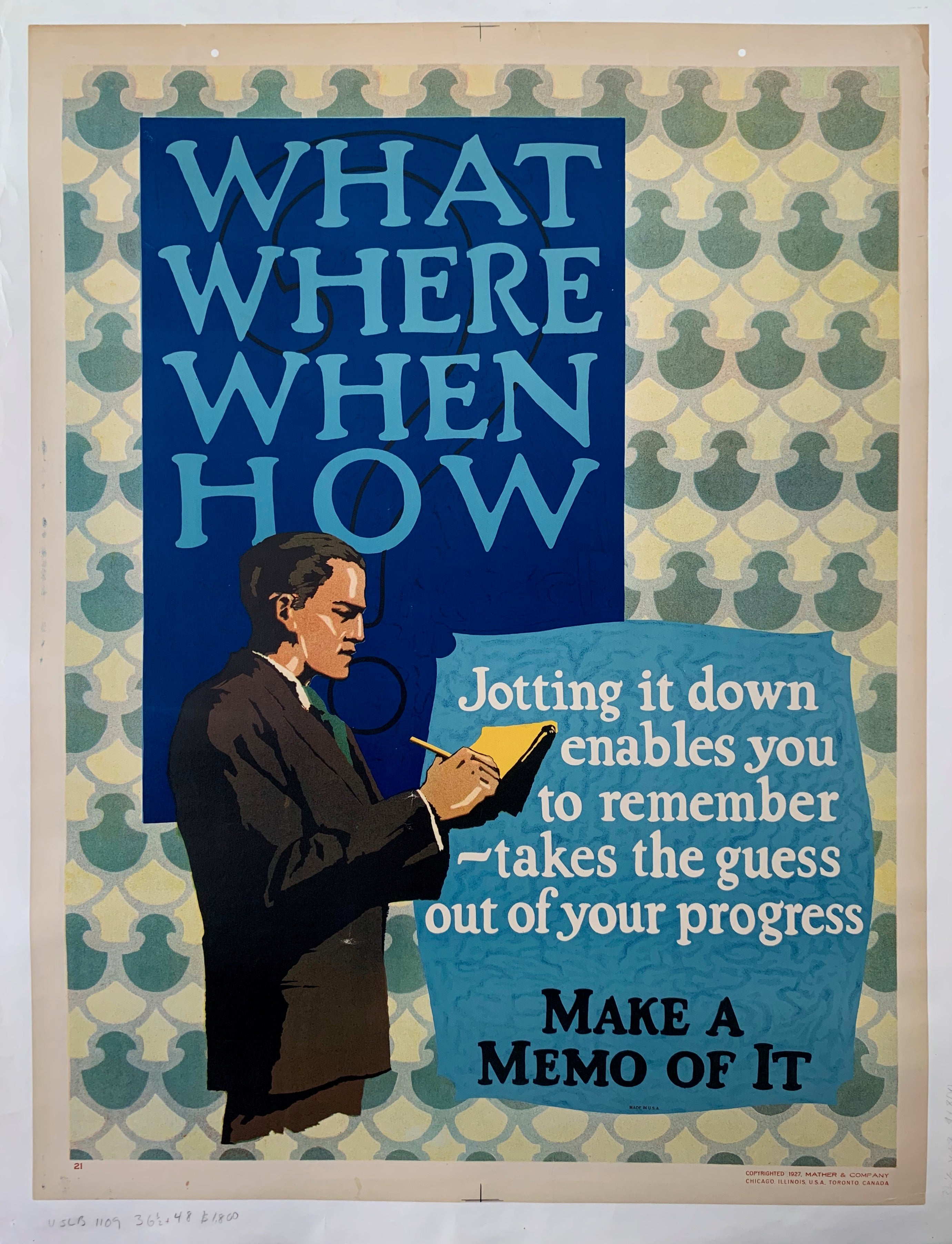 1000-2500 america labour Mather memory notes Original size-36-5x48 united states us USA vintage poster vintage posters work ethic