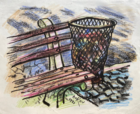Oil Drum Near the River Konstantin Bokov Oil Stick Drawing Product Link