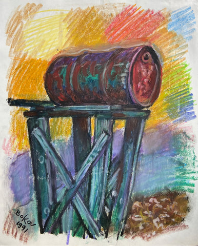 Overflowing Trash Can Konstantin Bokov Oil Stick Drawing Product Link