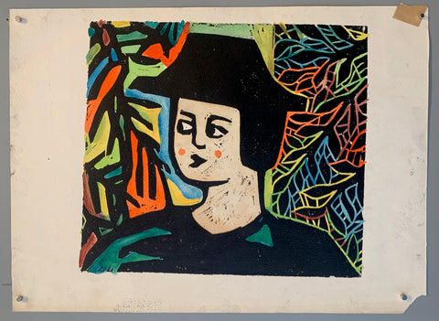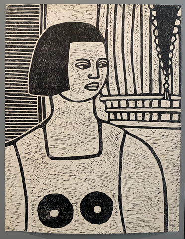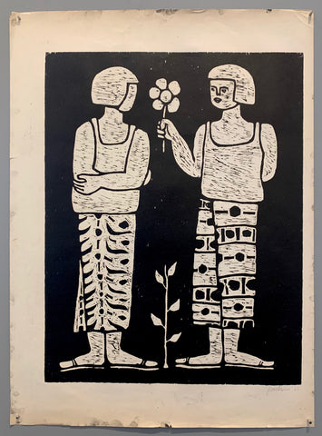Muscled Man and Woman Staring, Double-Sided Woodblock Product Link