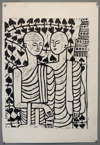 Three Monks and Monk in Doorway, Double-Sided Woodblock Product Link