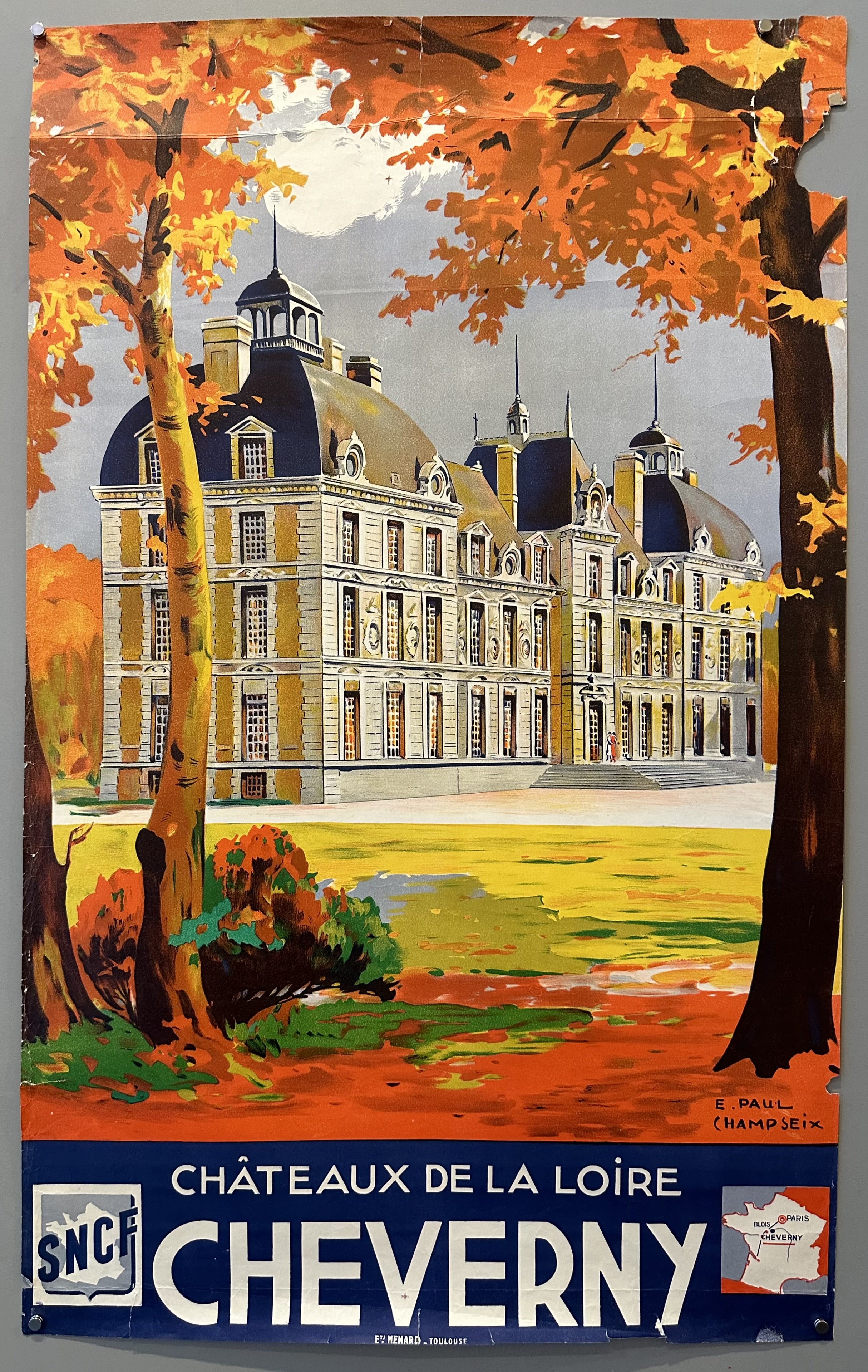 A beautiful poster by E. Paul Champseix of an autumnal day in Cheverny for SNCF.