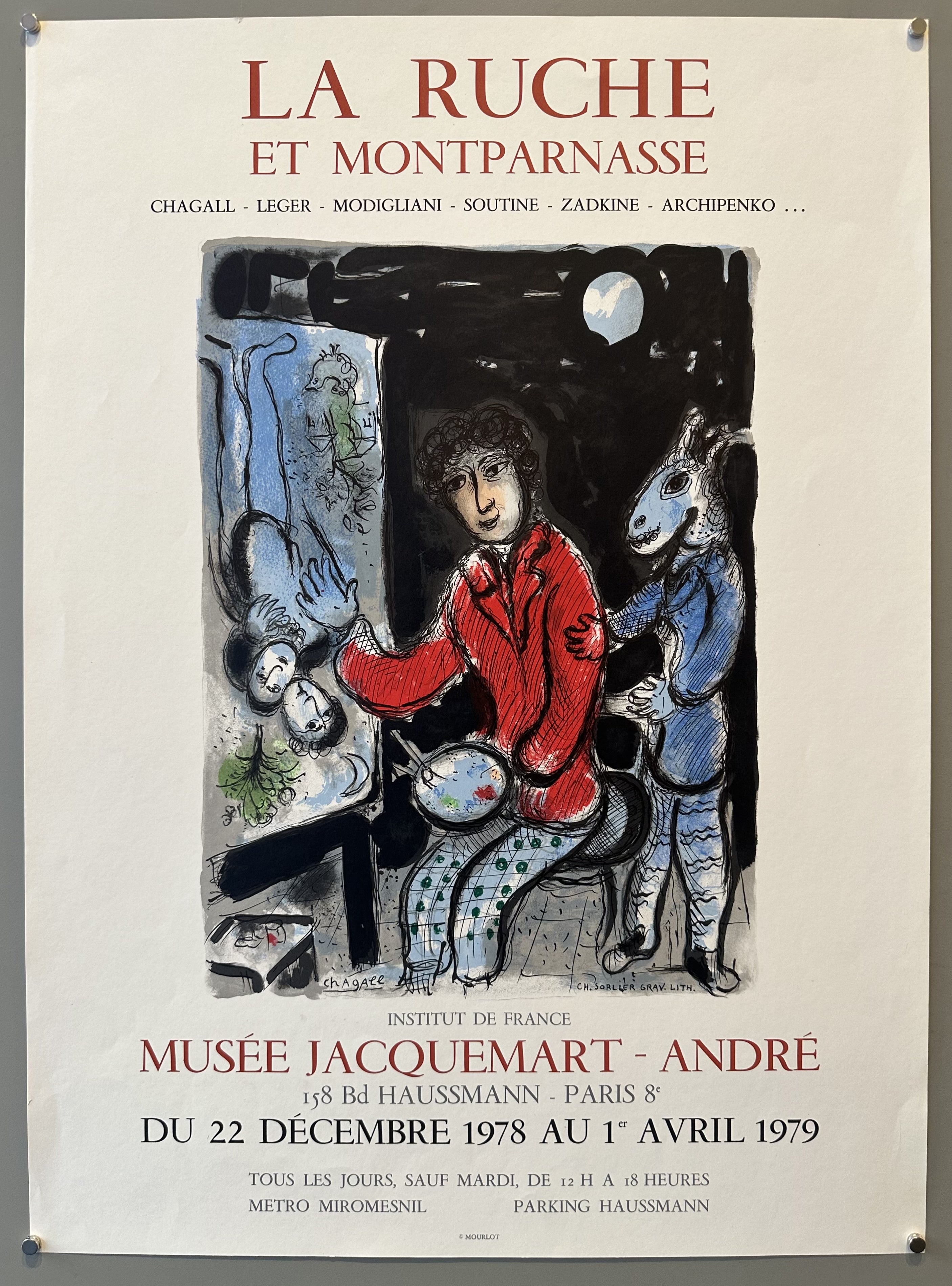 English translation: "The Hive and Montparnasse / Chagall - Leger - Modigliani - Soutine - Zadkine - Archipenko ... / Institut de France Jacquemart Museum - André / from December 22, 1978 to April 1, 1979"