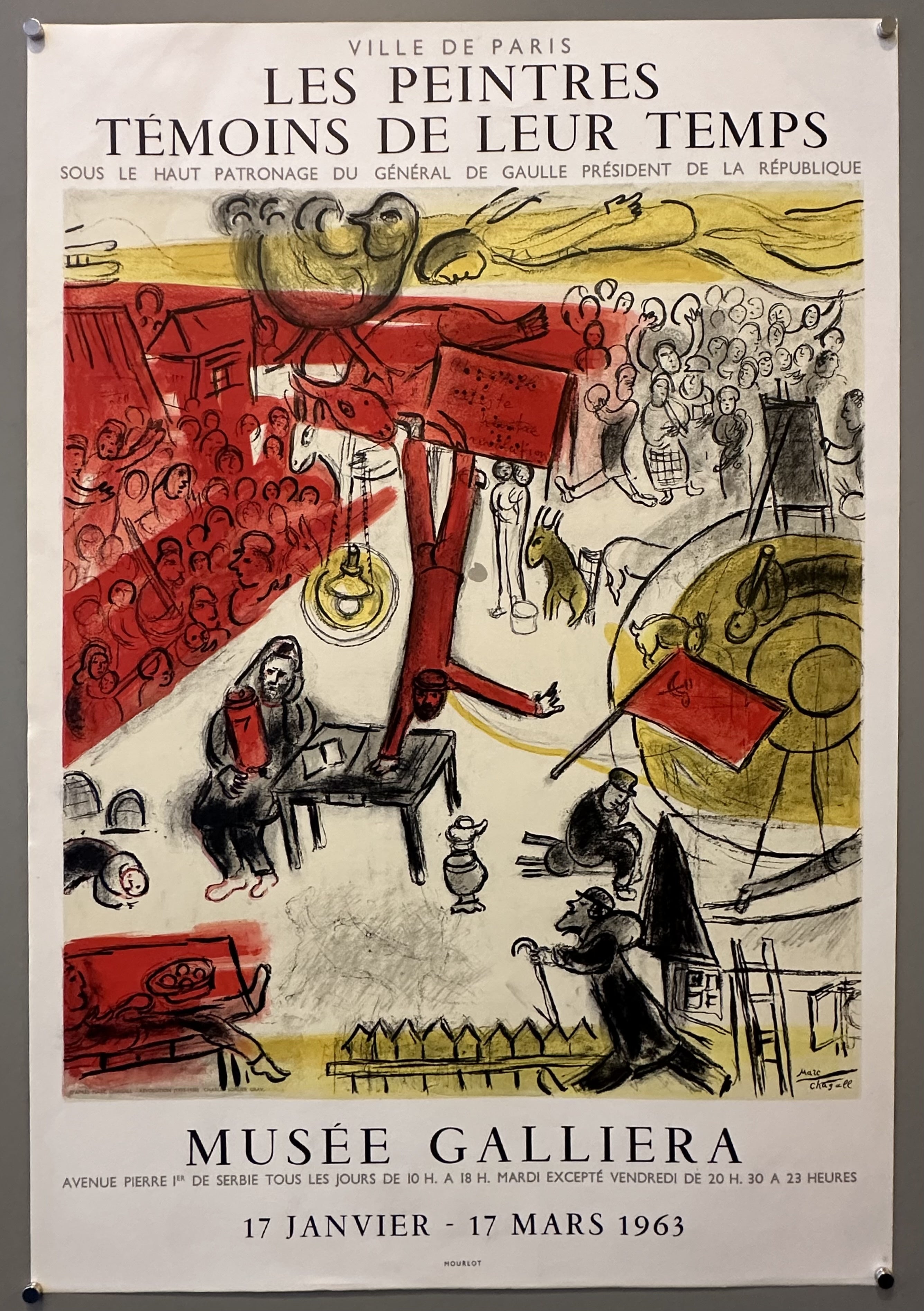 English translation: "City of Paris / Painters Witnesses of Their Time / Under the High Patronage of General de Gaulle President of the Republic / Galliera Museum / January 17 - March 17, 1963"