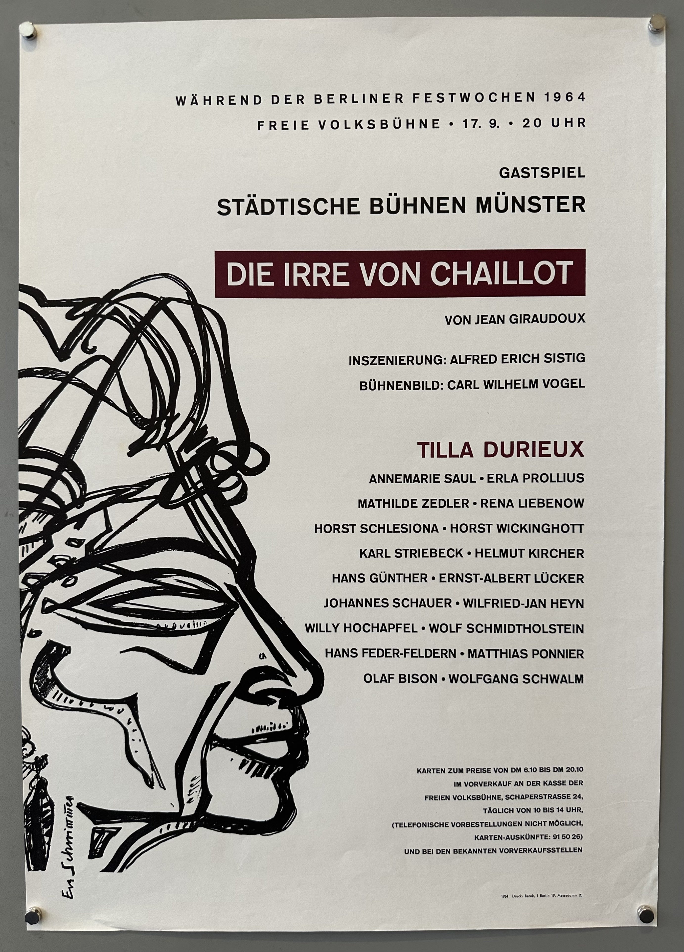 Promoting a German performance of Madwoman of Chaillot, a poetic satire, by French dramatist Jean Giraudoux, written in 1943 and first performed in 1945, after his death. The story concerns an eccentric woman who lives in Paris and her struggles against the straitlaced authority figures in her life.