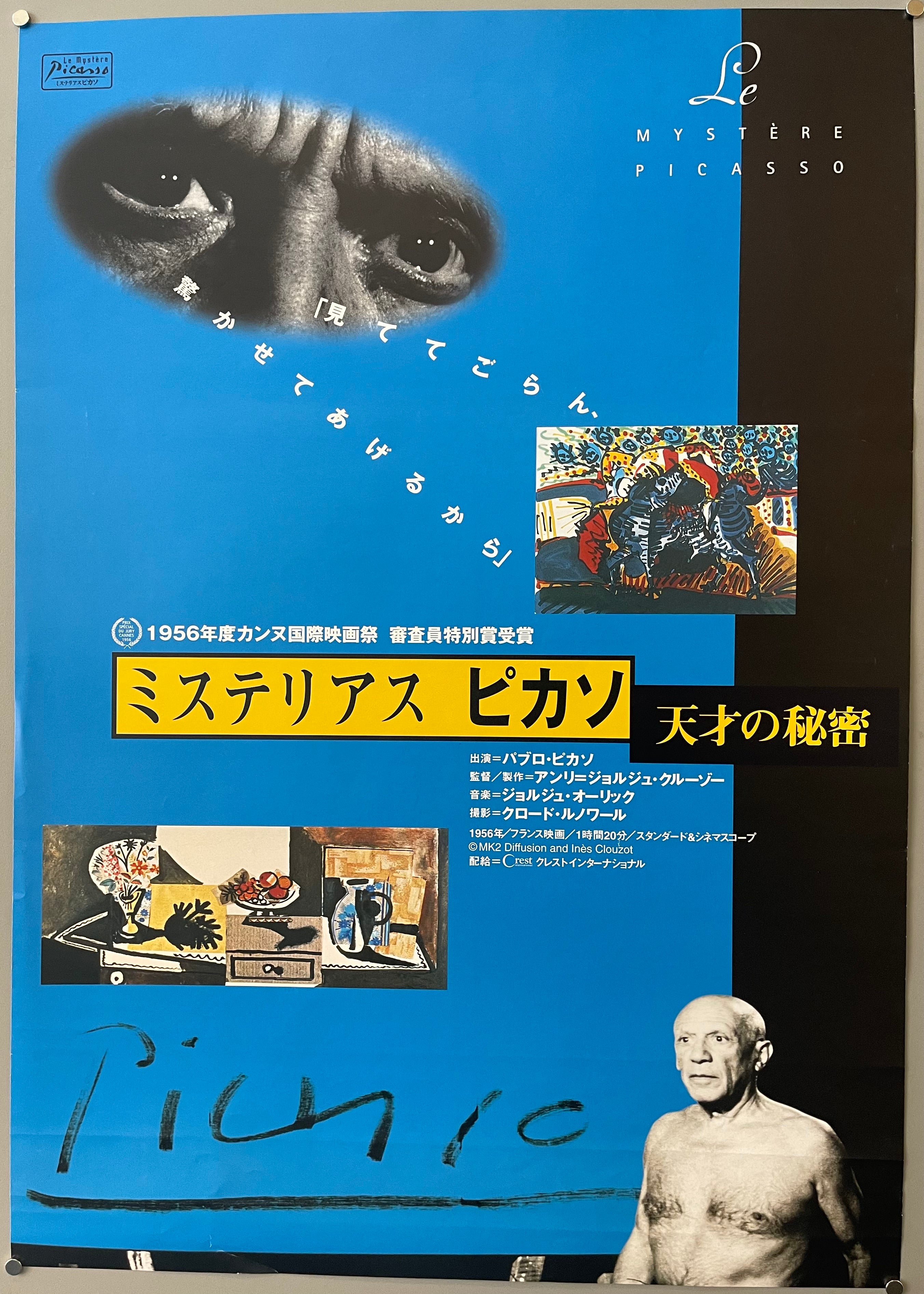Japanese film poster advertising Le Mystére Picasso, a French documentary about the internal creative process of Pablo Picasso, directed by Henri-Georges Clouzot.