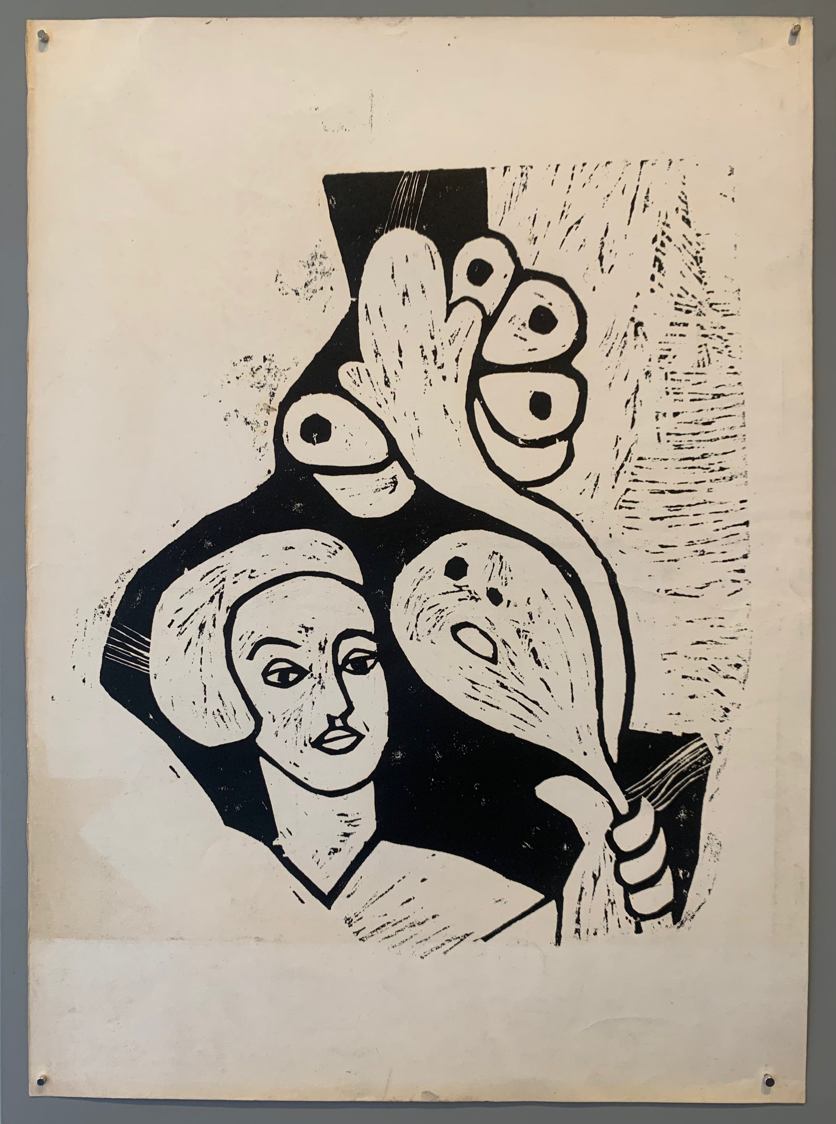 Joaquim Pedro Ribeiro Araujo was a Brazilian artist prominent in the 1960s. He worked with a wide variety of mediums including oils, tempera, ink, and woodblocks. Joaquim surrounded himself with fellow avant-garde artists of the time, including Brazilian modern artists Amilcar de Castro and Helio Oiticica. He studied art in Sao Paulo before moving to Japan where he was introduced to woodblock prints, by which he was greatly inspired. He spent a lot of time in Asia, moving to Bangkok, Thailand, where he started writing opinion pieces for the Bangkok World, climbing the art world ladder. He released his manifesto which focused on the concept of ephemerality—he believed that values are inadequate because time is always changing, therefore one should follow their own beliefs. Opposed to everything popular, Joaquim wanted to challenge the status quo and break the beatnik artist stereotype saying, “my paintings are not just for decoration in the living room. I paint to create a universe.” His works are centered around people he saw in Japan, Thailand, Singapore, Malaysia, and Pakistan, all places where he held well-received exhibitions. He became the first South American to exhibit in Southeast Asia and the first Brazilian to exhibit in Pakistan. Though Joaquim’s works were visually bizarre at times or difficult to grasp, it was hard to critique a man who held such powerful faith in his own work and believed that nothing is unchangeable, even woodblock pieces.