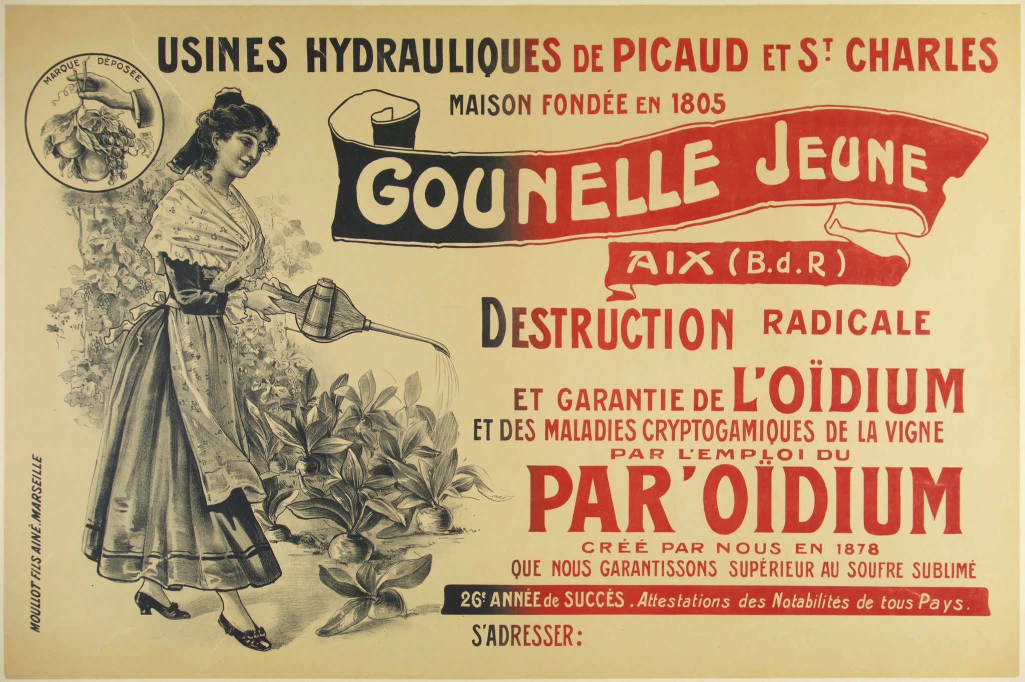1880 250-500 c. 1880 chemical chemicals crops farm farming France french horizontal Large Original pesticide plants product red size-47x31 vintage poster vintage posters