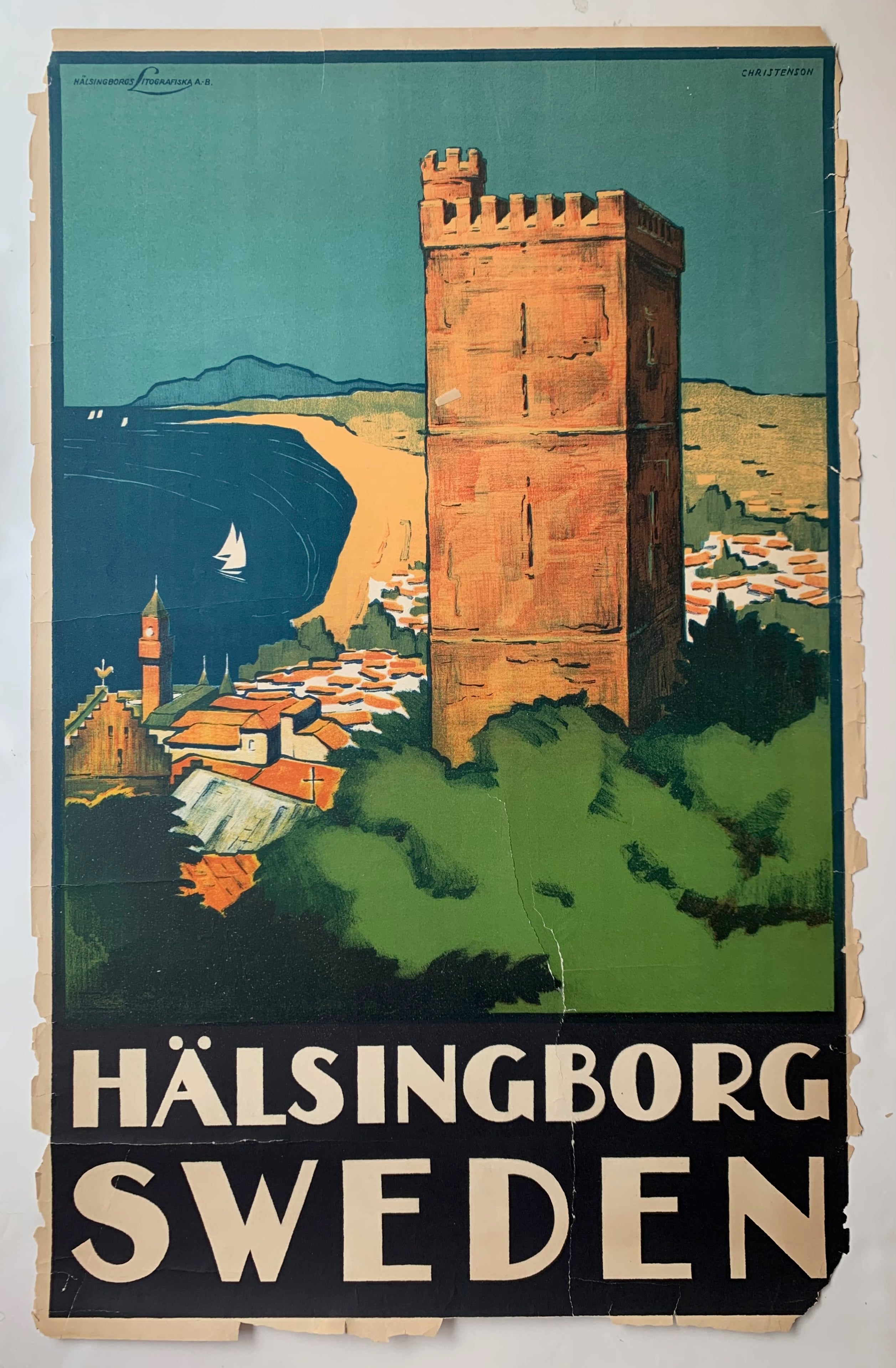 What a serene vista! This classic travel poster shows the landscape of a town in Sweden. The deep blue ocean with dotted with crisp white sailboats and the ancient architecture make this a truly enticing scene.