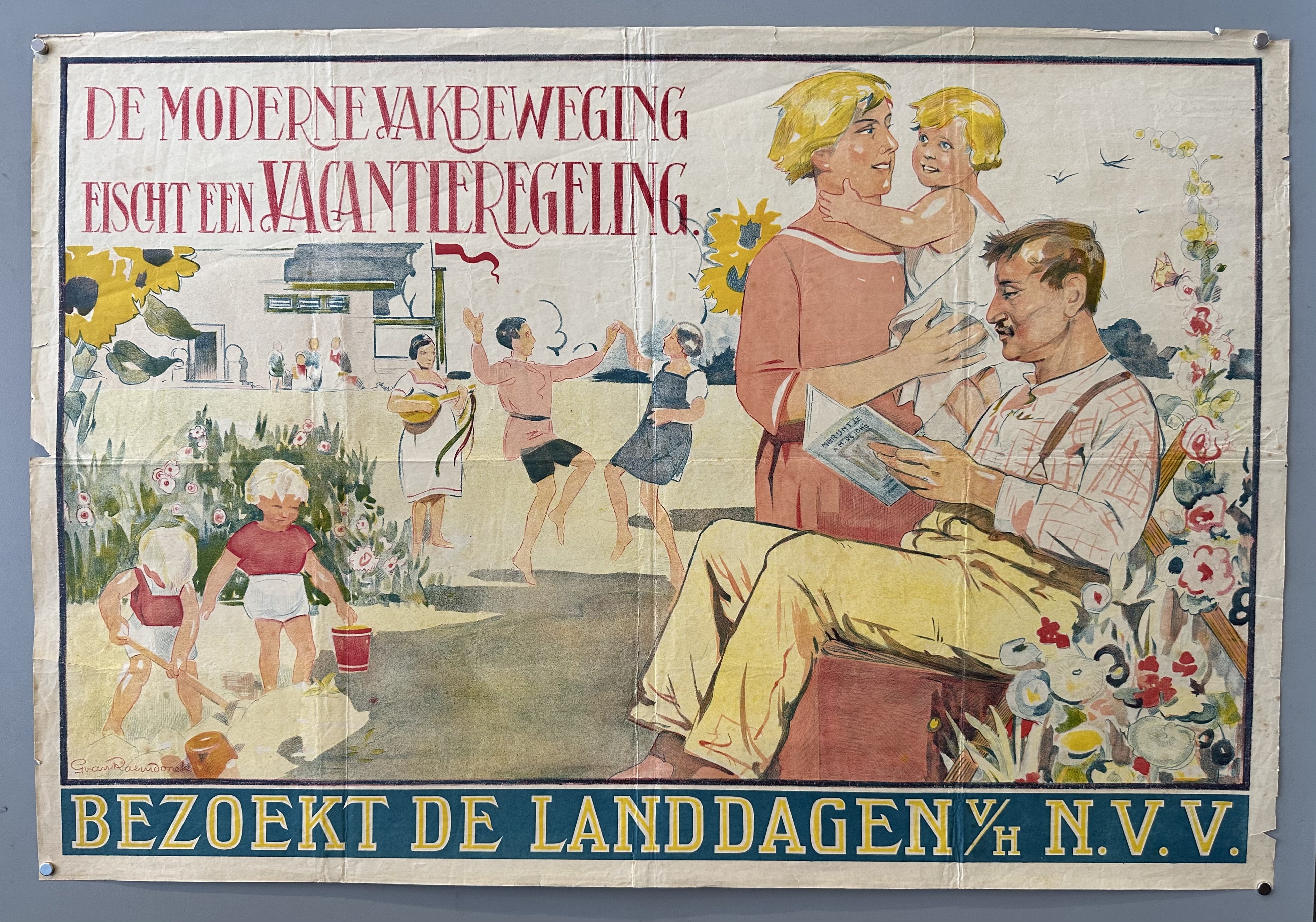 English translation: "The Modern Trade Union Movement Demands a Vacation Scheme / Attends the Land Days of the N.V.V."
