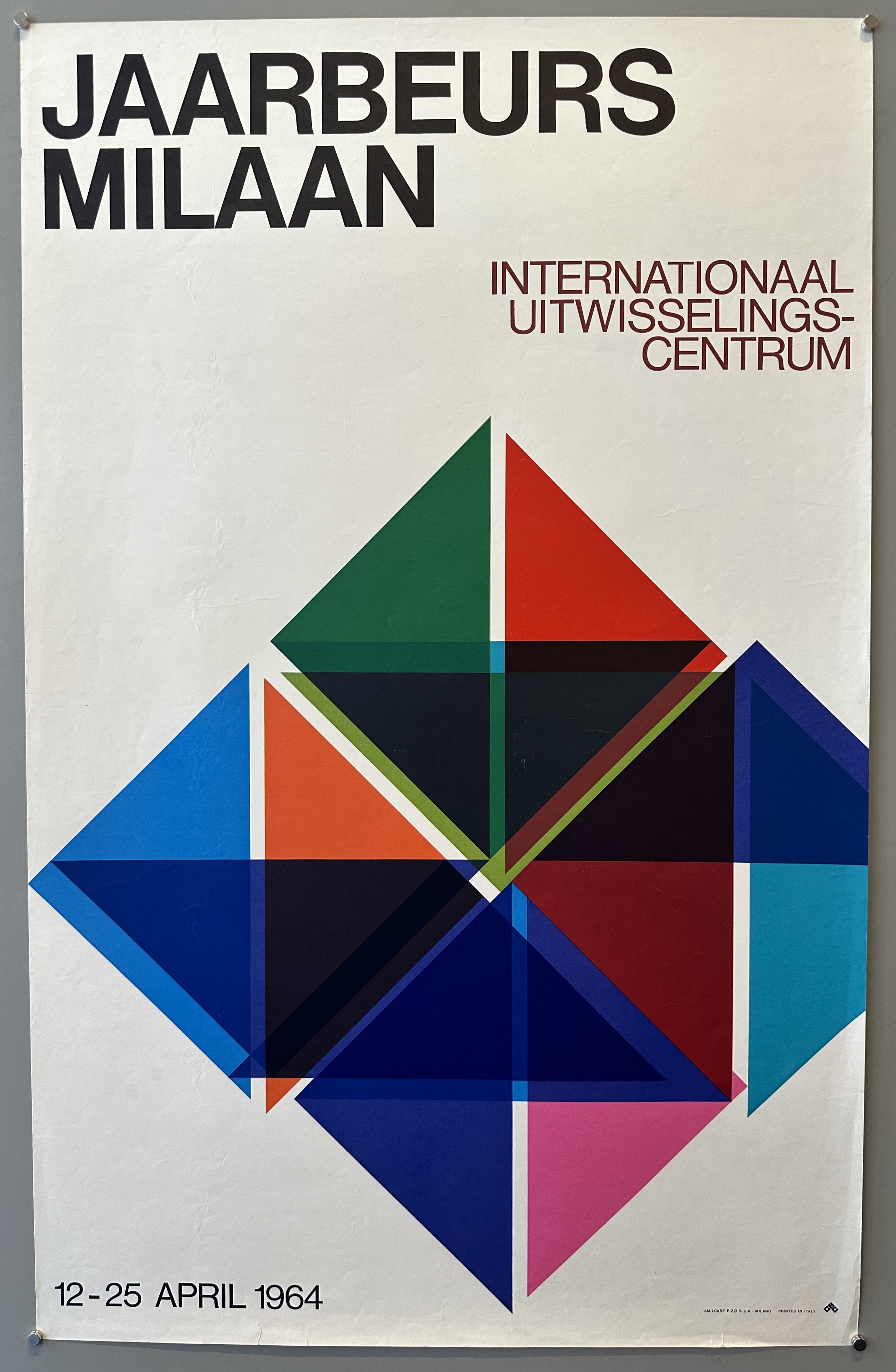 This Dutch edition promotes Milan's annual trade fair. A pop art-esque pattern combines color and business in this minimalist print.