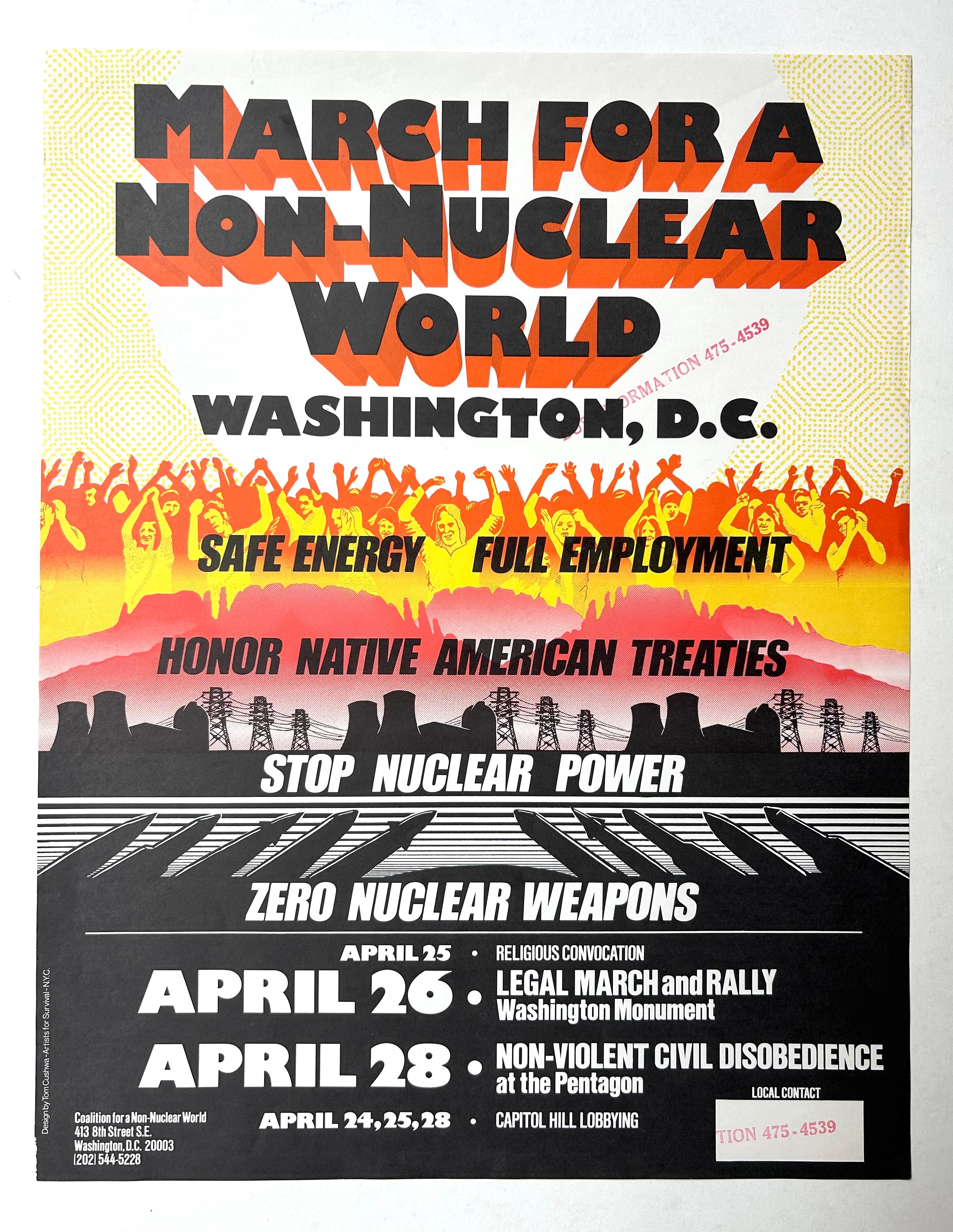 "Safe energy, Full employment, Honor Native American treaties, Stop Nuclear Power, Zero Nuclear Weapons..."
