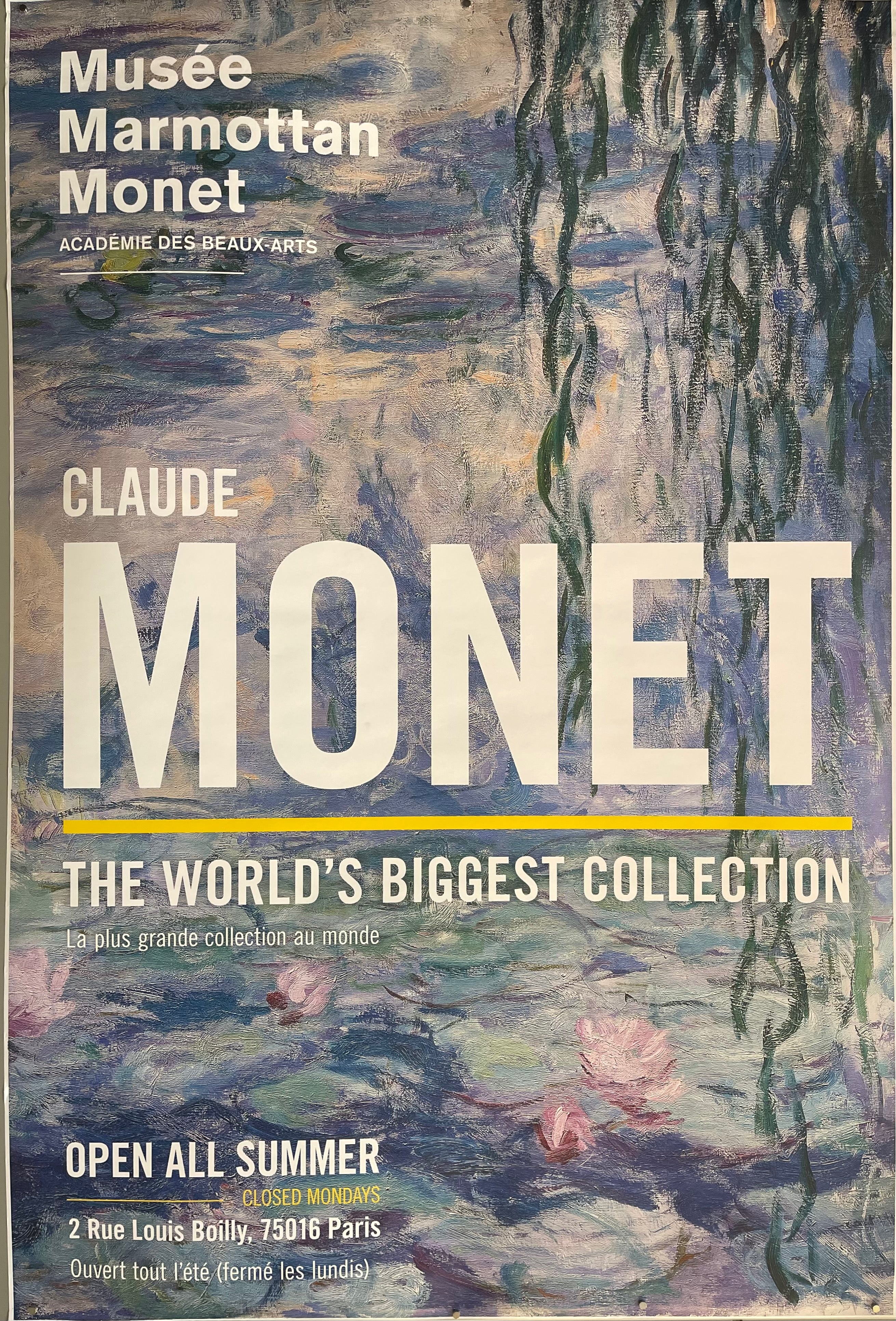 "Musée Marmottan Monet / ACADÉMIE DES BEAUX-ARTS / CLAUDE / MONET / THE WORLD'S BIGGEST COLLECTION / La plus grande collection au monde / OPEN ALL SUMMER / CLOSED MONDAYS / 2 Rue Boilly, 75016 Paris / Ouvert tout l'eté (fermé les lundis)"