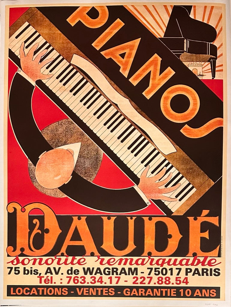 The Pianos Daude poster by Andre Duade is a French advertising poster made to promote a company that sold pianos during the 20th century.