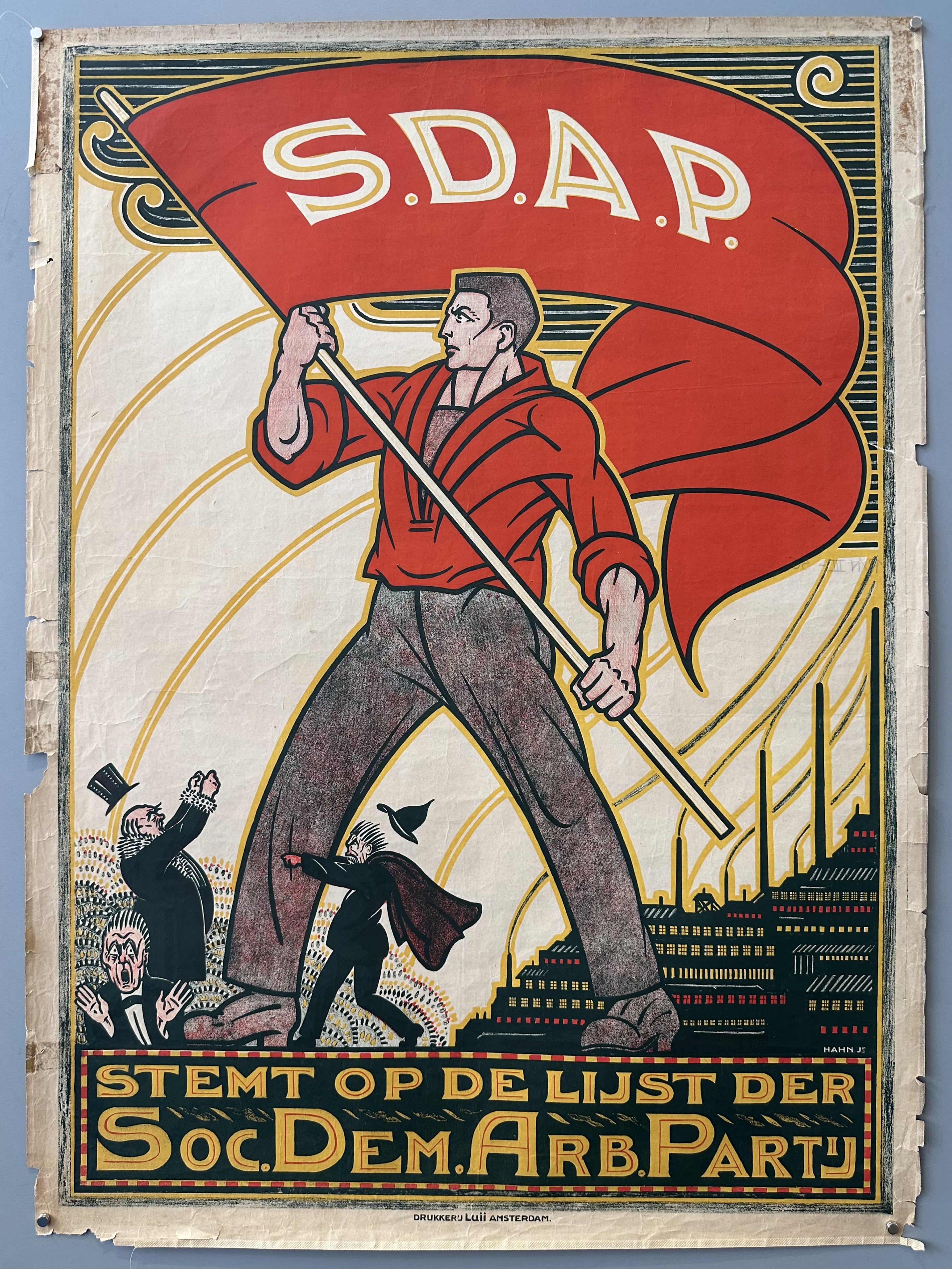 SDAP (Sociaal-Democratische Arbeiderspartij, Social Democrat Working Party, active in the Netherlands from 1894-1946) poster: "Vote for the list of the Soc. Dem. Arb. Party."