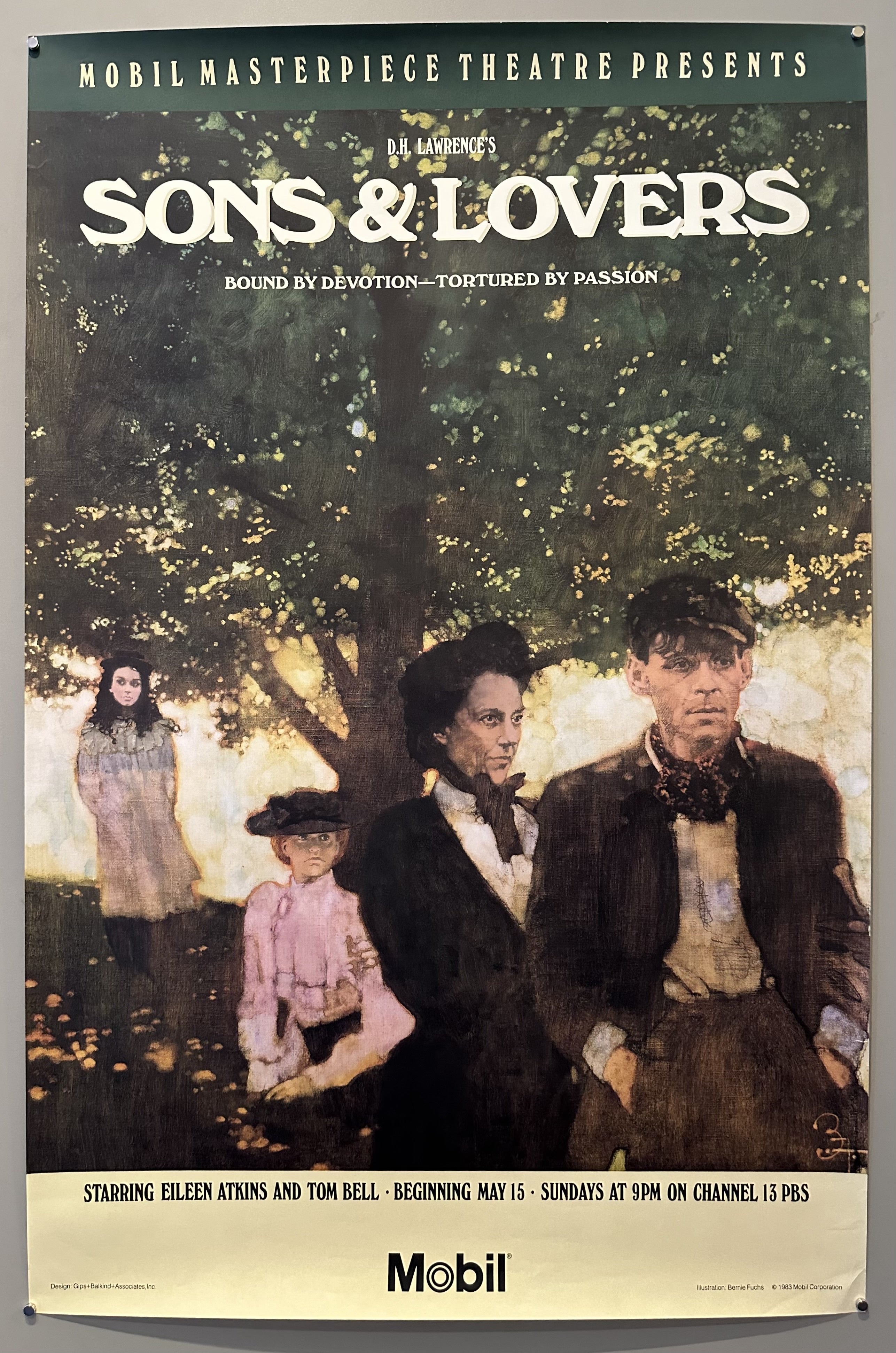 "Mobil Masterpiece Theatre Presents / D.H. Lawrence's Sons & Lovers / Bound by devotion -- tortured by passion / Starring Eileen Atkins and Tom Bell - Beginning May 15 - Sundays at 9 PM on Channel 13 PBS"