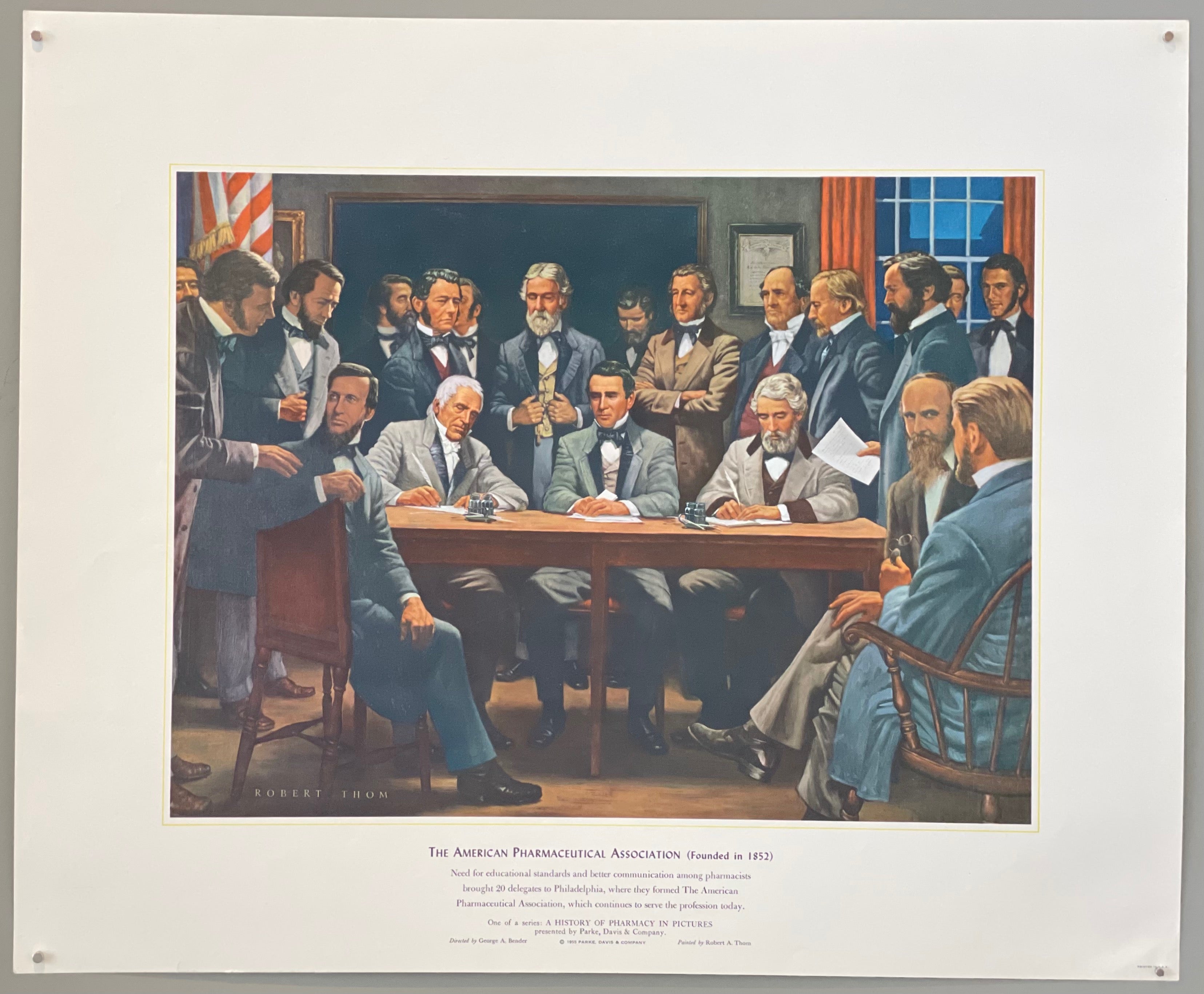 "(Founded in 1852) Need for educational standards and better communication among pharmacists brought 20 delegates to Philadelphia, where they formed The American Pharmaceutical Association, which continues to serve the profession today."