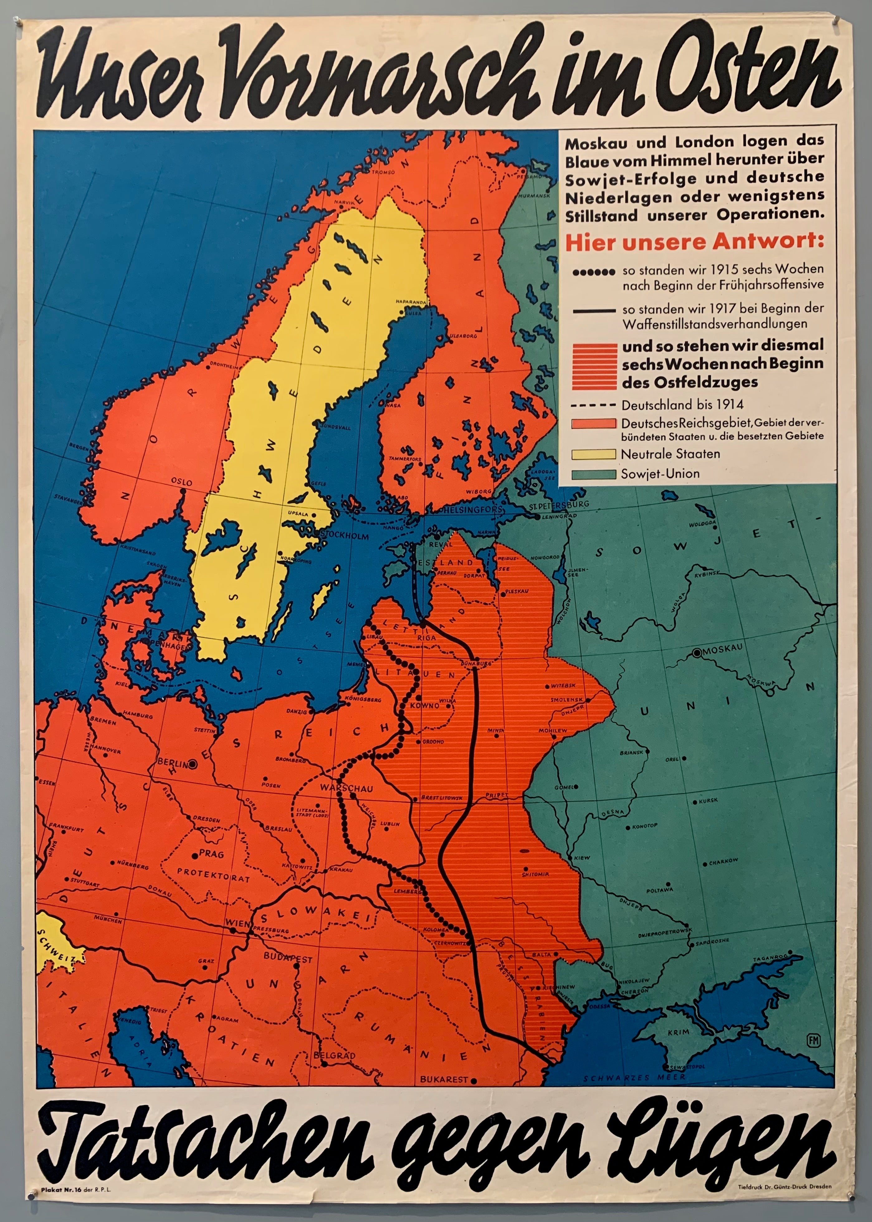A rare and well-designed work of WWII Third Reich cartographic propaganda proclaiming the success of the ‘Operation Barbarossa’, the ongoing German ‘blitzkrieg’ invasion of the Soviet Union, made by the Nazi Propaganda Directorate.