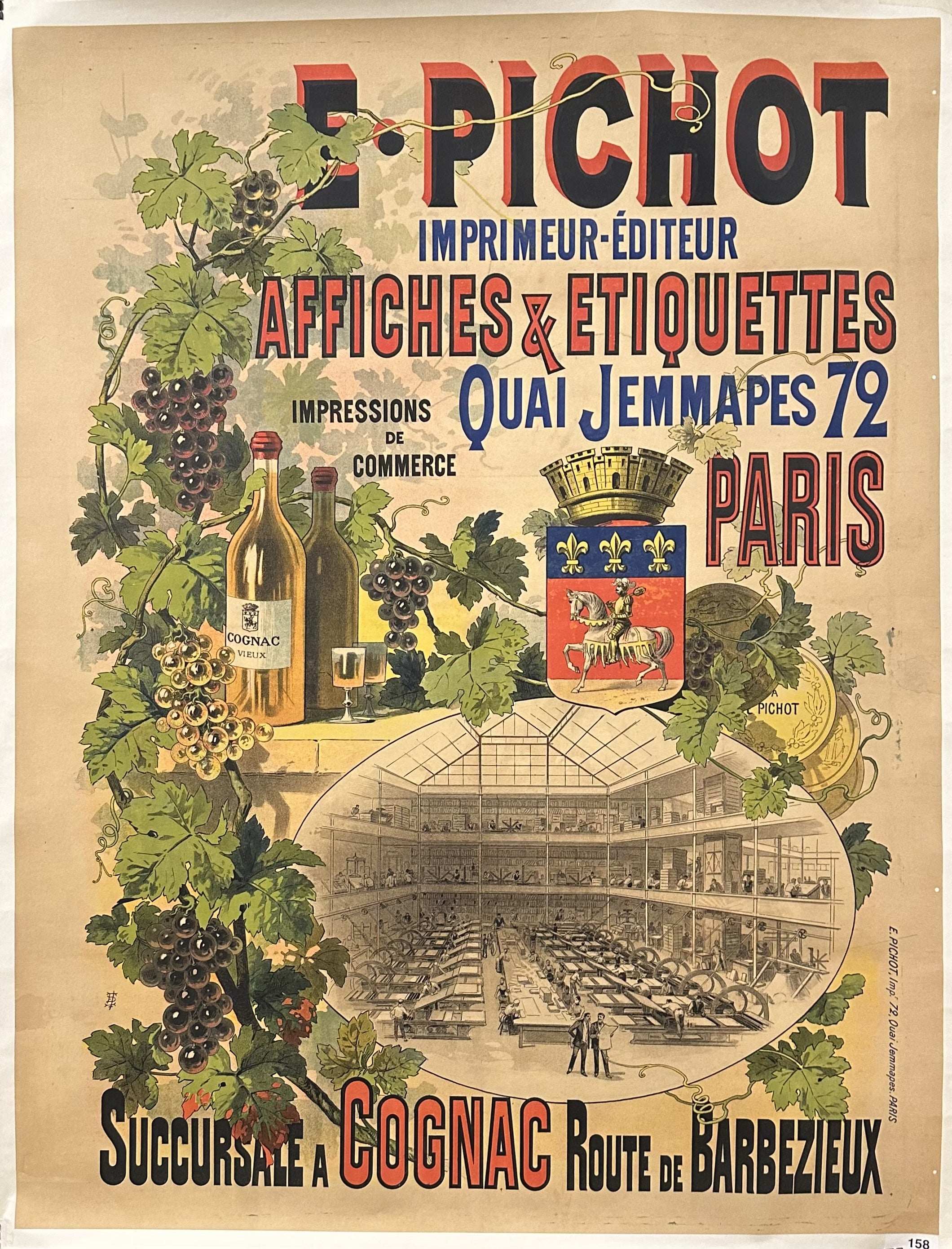 English translation: "E. Pichot / Printer-Publisher / Posters & Labels / Commercial Printing / Quai Jemmapes 72 Paris / Branch A Cognac Route de Barbezieux"