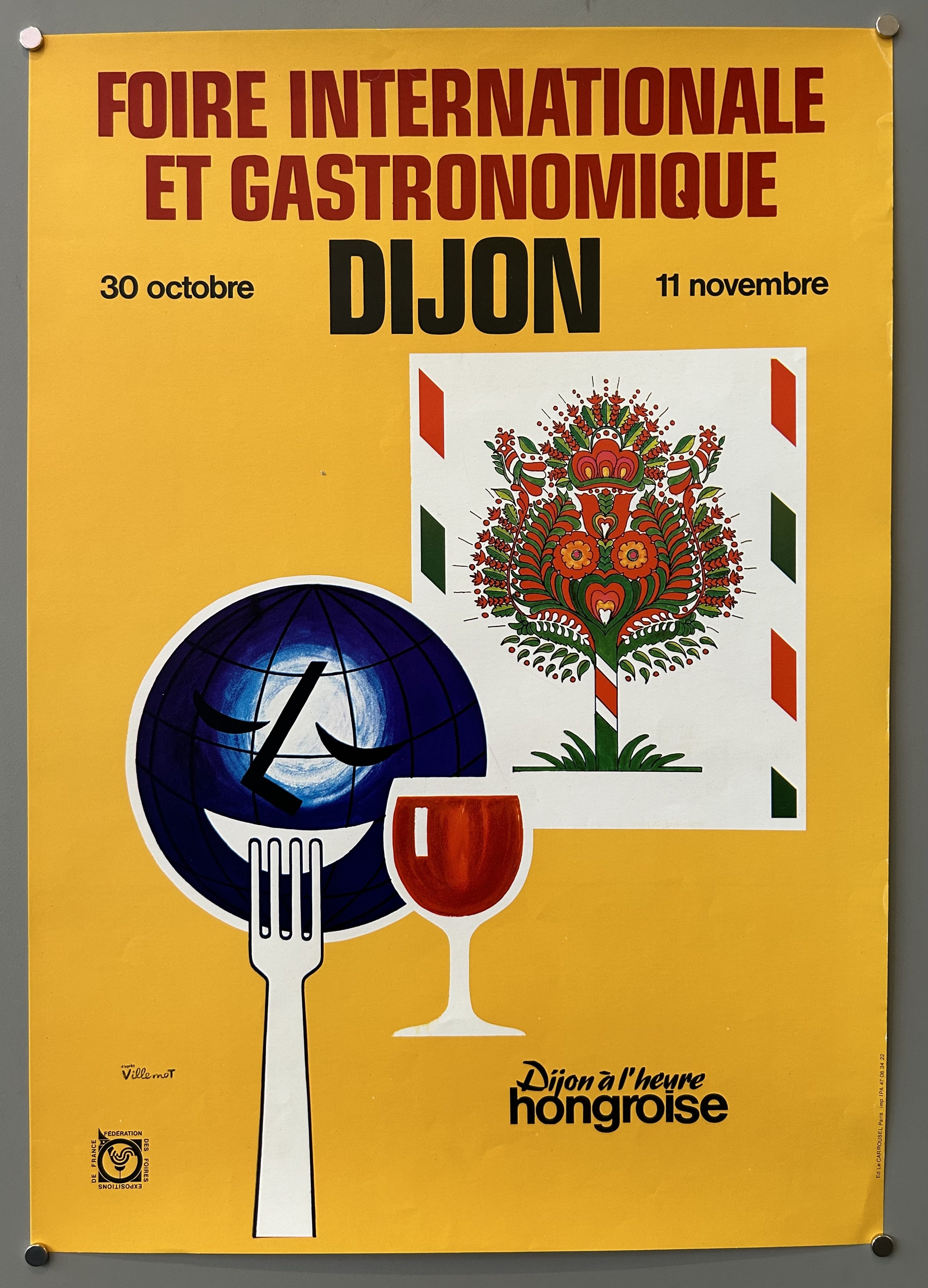 100-250 budapest eastern europe fair food foodie fork globe hungary hungry international original poster poster size-21x15 villemot vintage wine world yellow