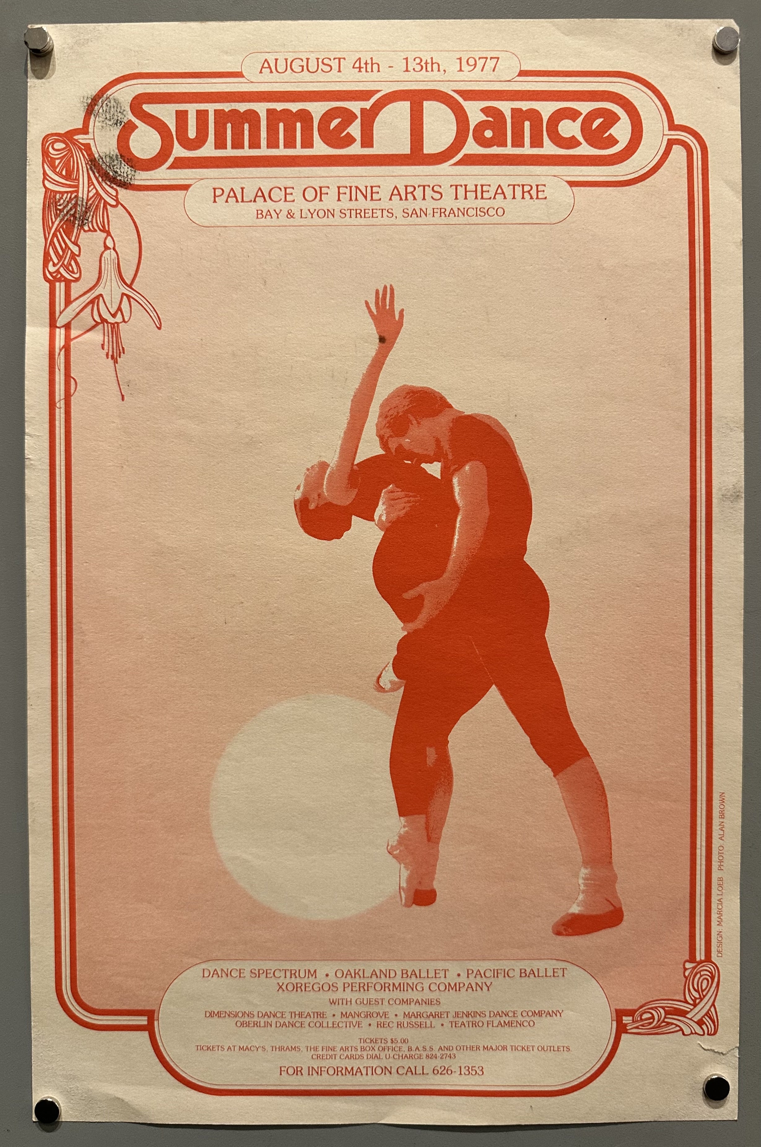 Promoting a series of dance performances at the San Francisco Palace of Fine Arts Theatre, including Dance Spectrum, Oakland Ballet, Pacific Ballet, and Xoregos Performing Company.