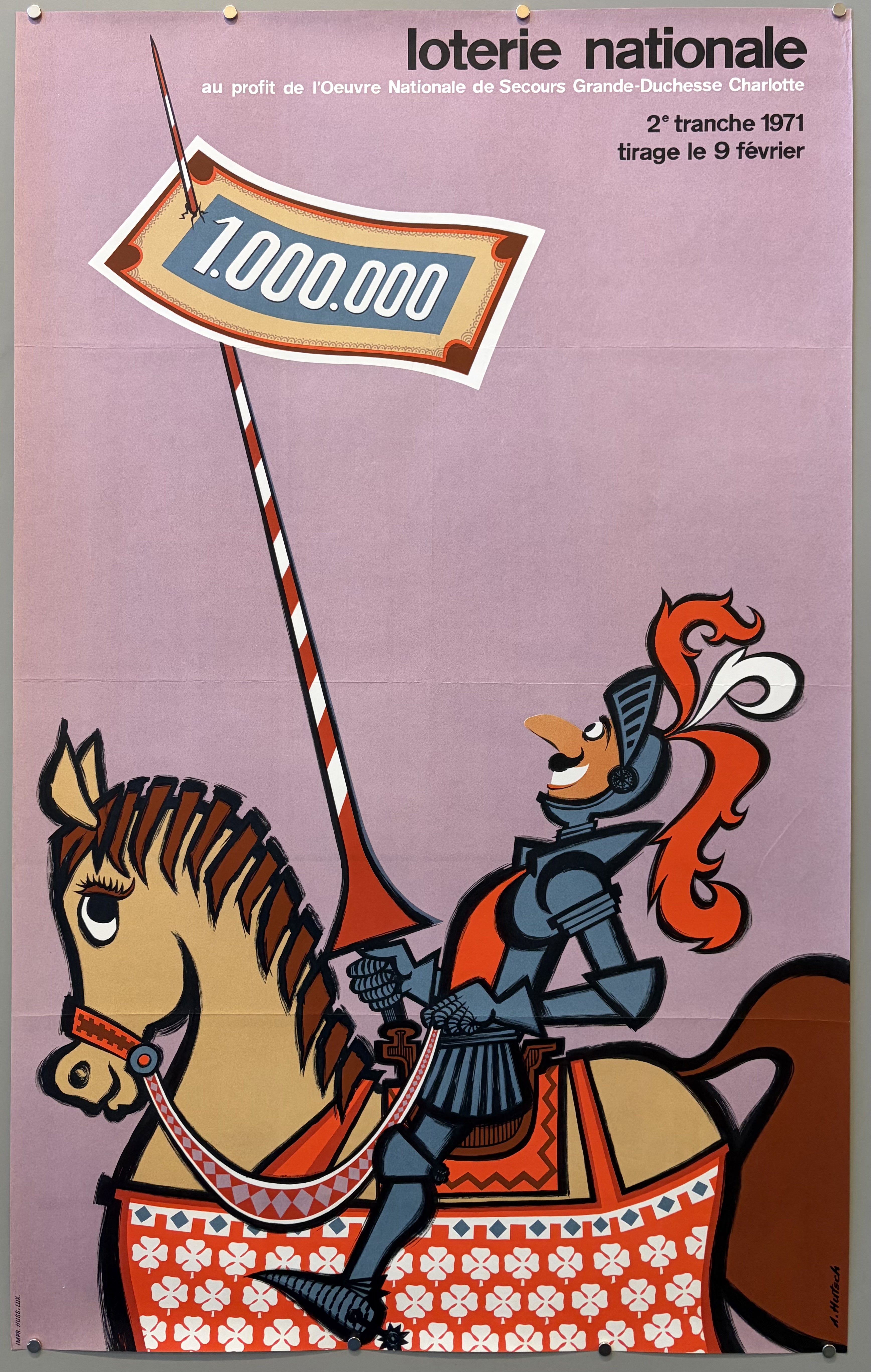 250-500 advertisement advertising cartoon colorful design graphic graphic design horse knight loterie nationale lottery Luxembourgish original poster poster size-39x25 vintage