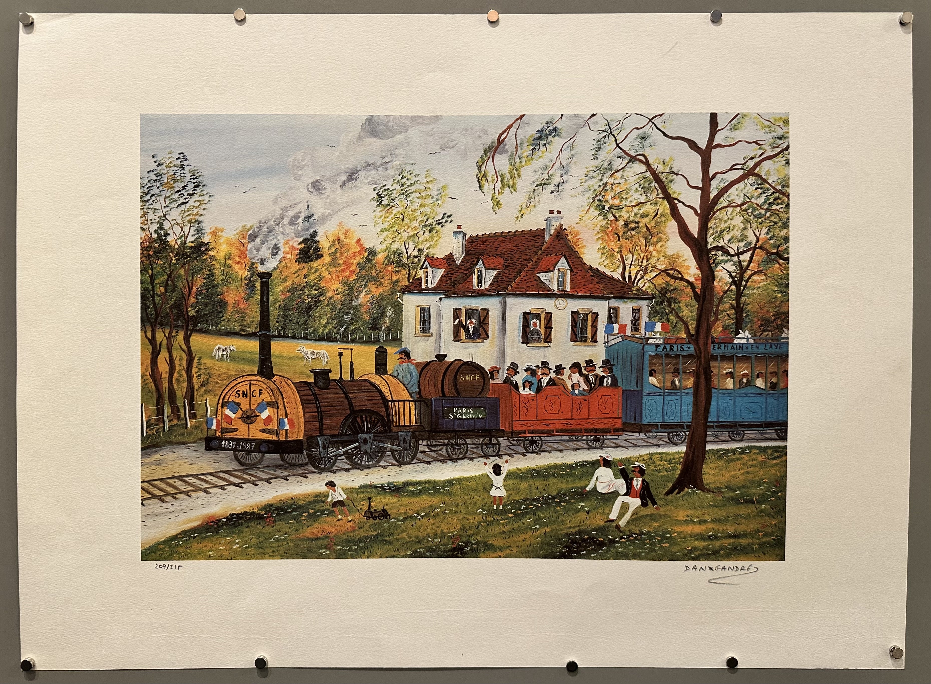 A signed copy (#209 out of 215 copies) of 'Le train Paris / St Germain' by French painter Dan Gandre.