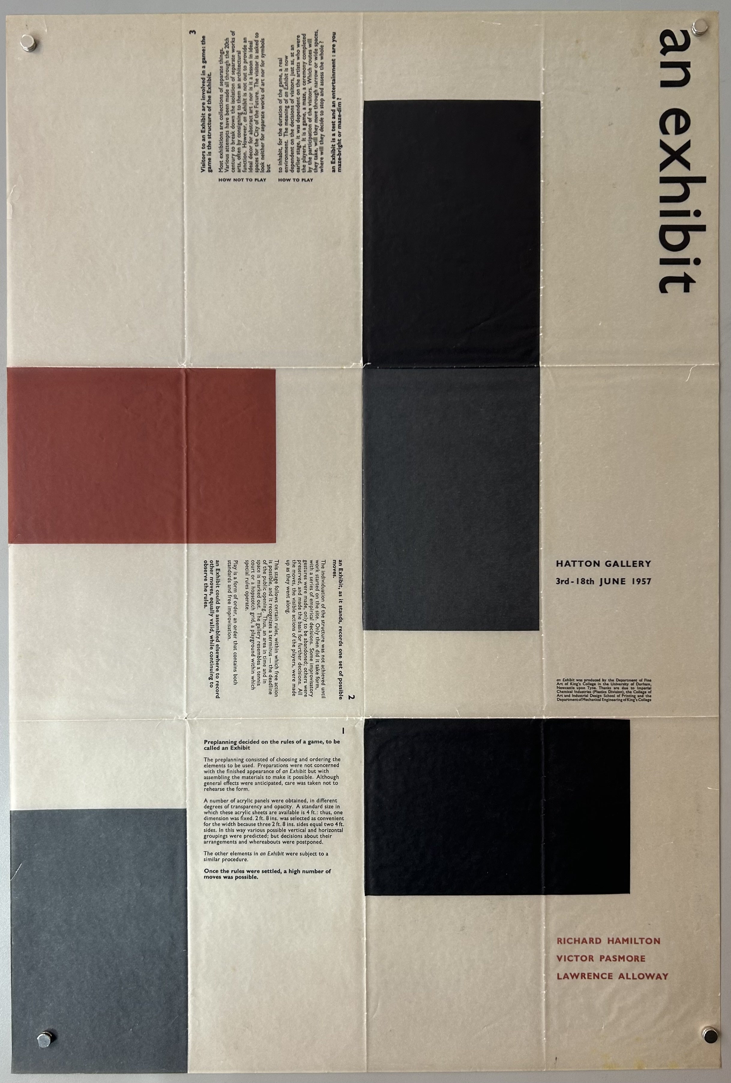 "an exhibit / Hatton Gallery / Richard Hamilton, Victor Pasmore, Lawrence Alloway"