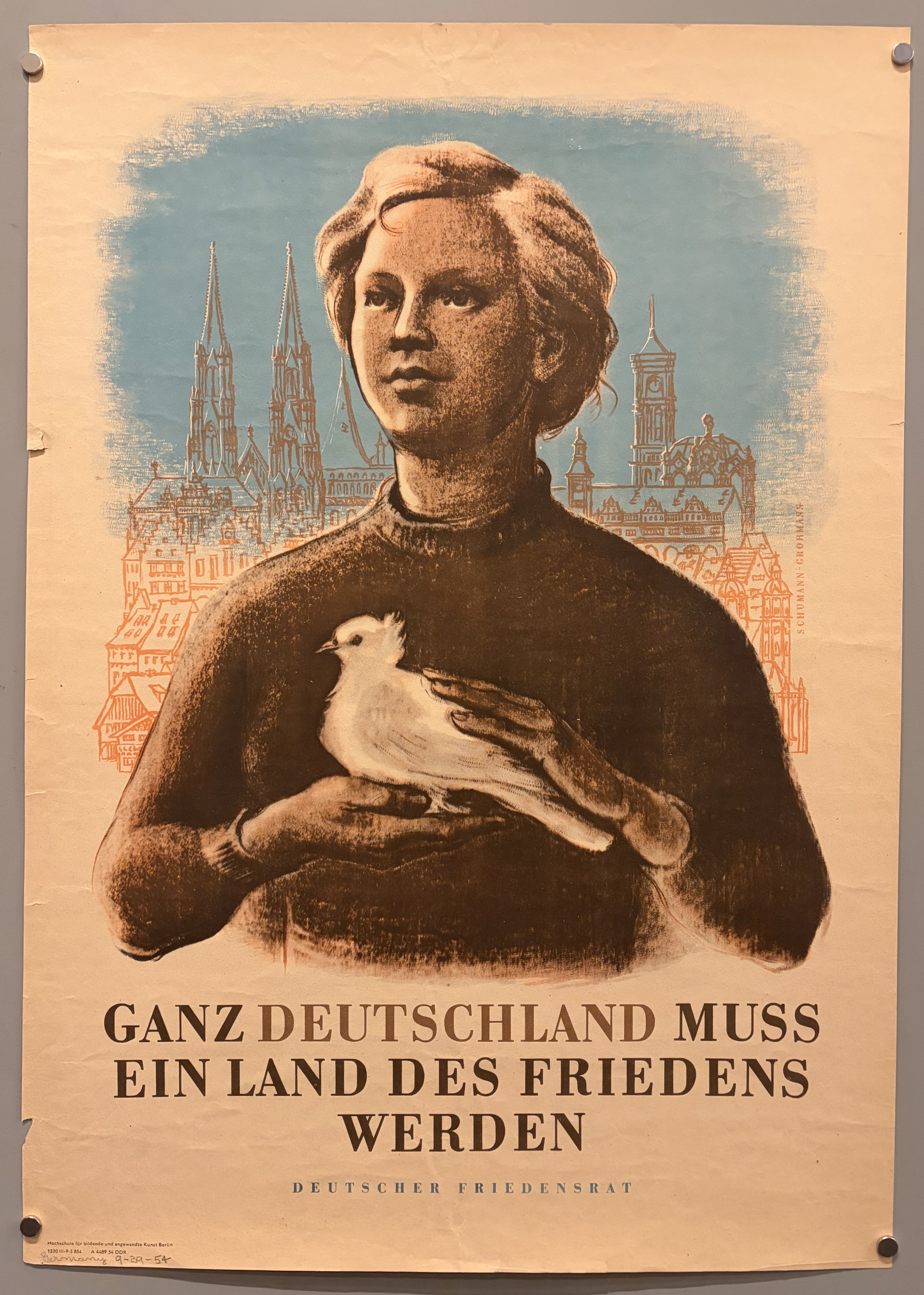 Issued by the Deutscher Friedensrat (German Peace Council), this post-World War II poster advocates for peace across the country. Published in East Germany.