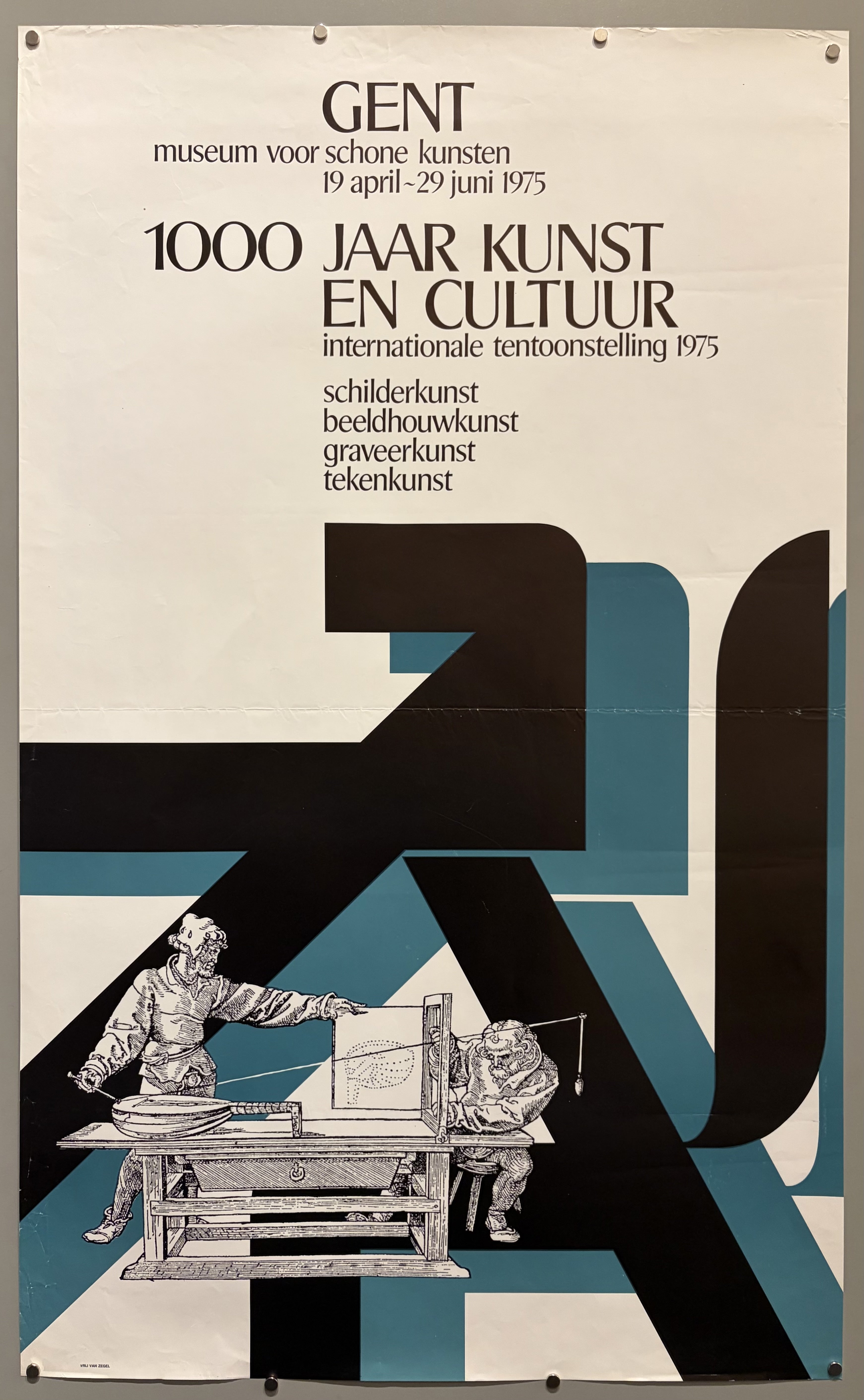 English Translation: "Ghent Museum of Fine Arts / April 19 - June 29, 1975 / 1000 Years of Art and Culture International Exhibition 1975 / painting / sculpture / engraving / drawing"