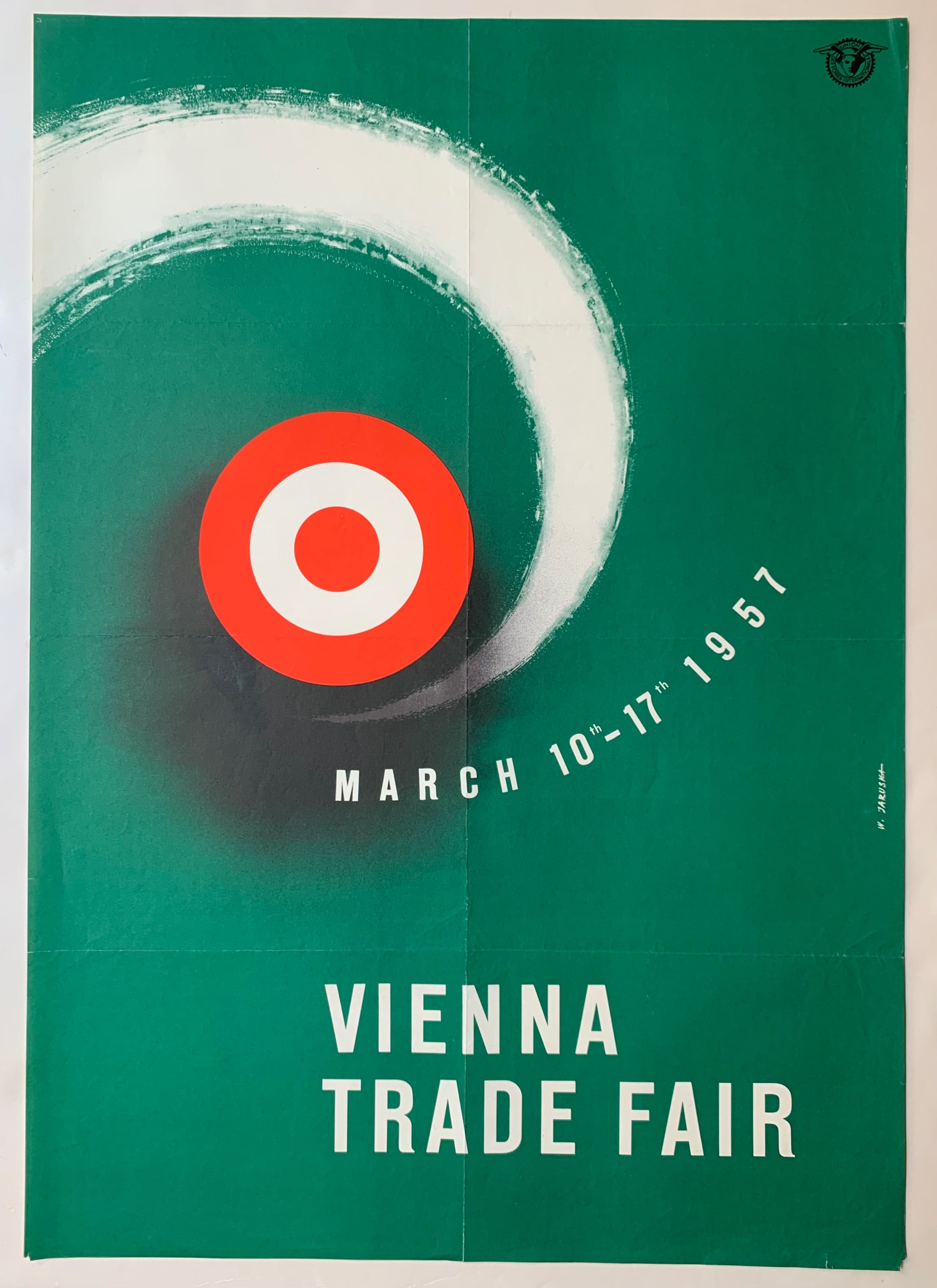 Image: A bullseye sits slightly left of center in this poster advertising the Vienna Trade Fair.