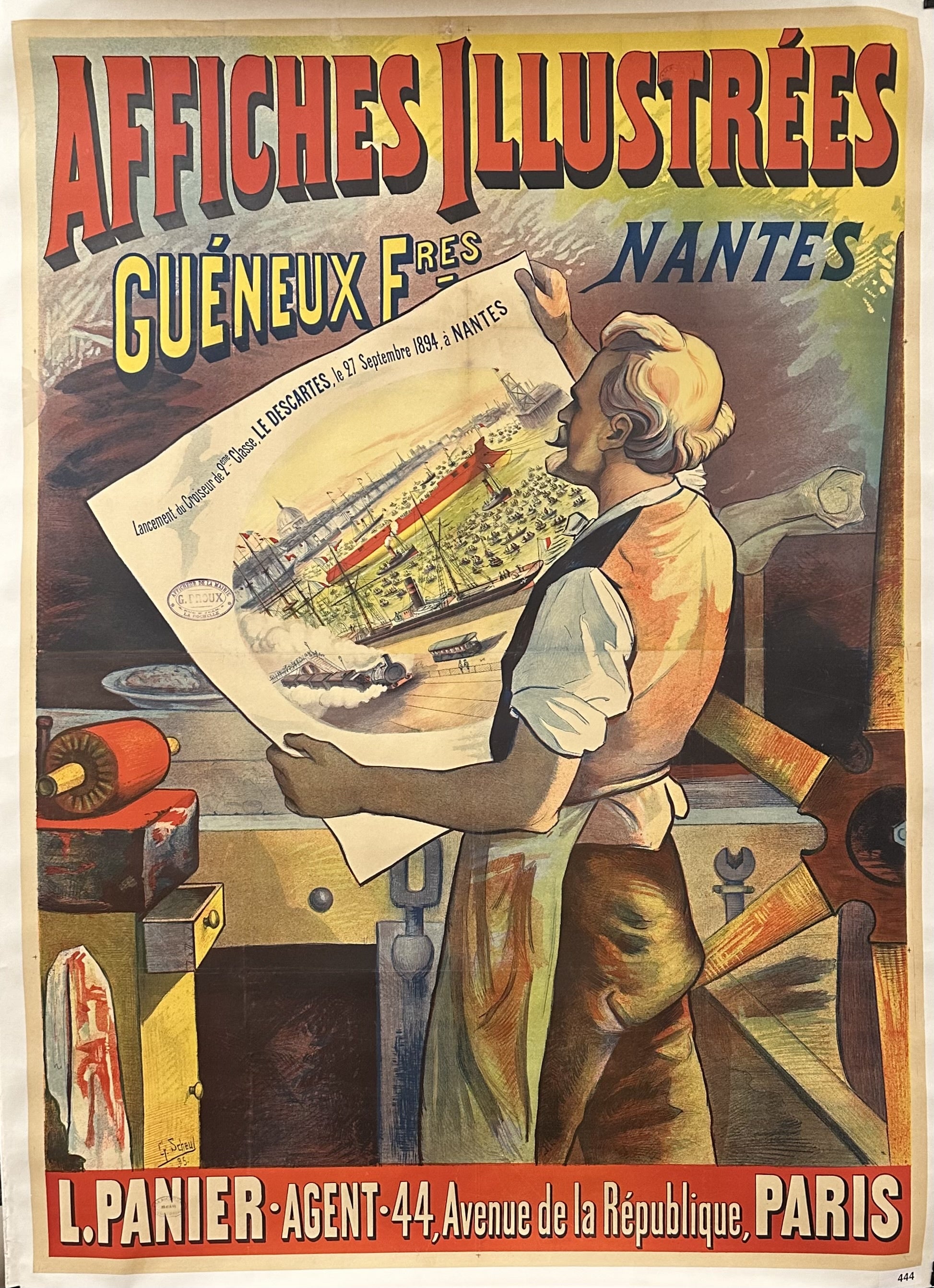 "Affiches Illustrées / Guéneux Fres. Nantes / Lancement du Croiseur de 2éme CLasse, Le Descartes, le 27 September 1894, à Nantes"