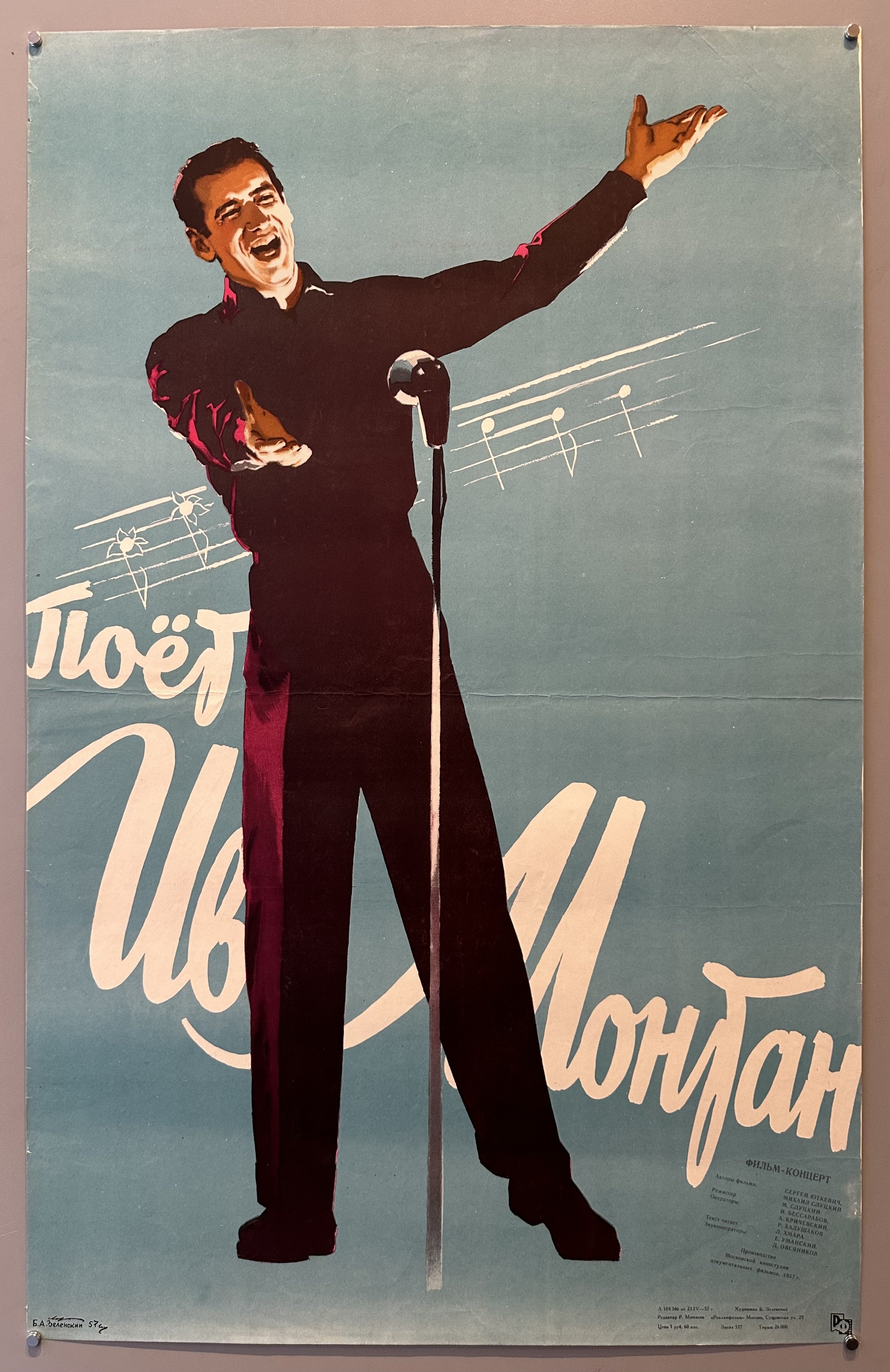 Poster for the Russian film "Yves Montand Sings," about the famous French singer's tour in the USSR.