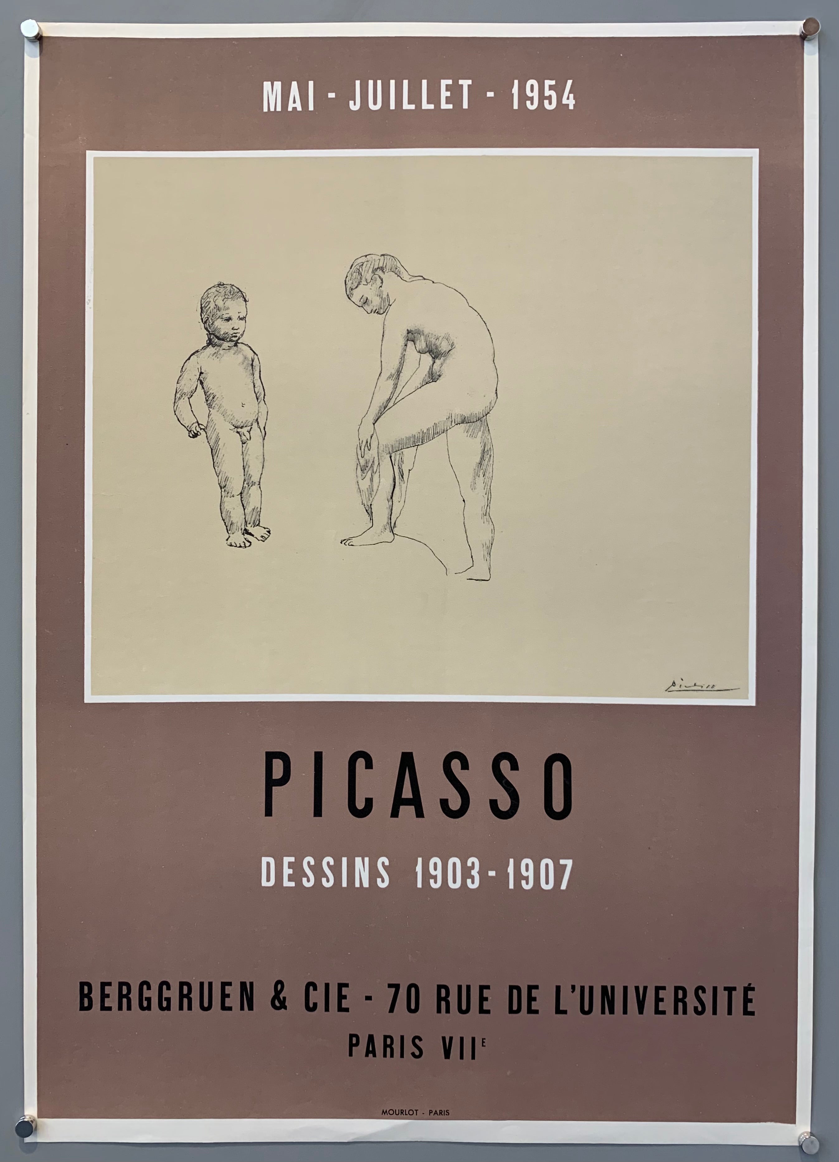 Description: Poster created for an exhibition at Galerie Berggruen et Cie in Paris featuring a simple yet beautiful Picasso lithograph of two nude figures.