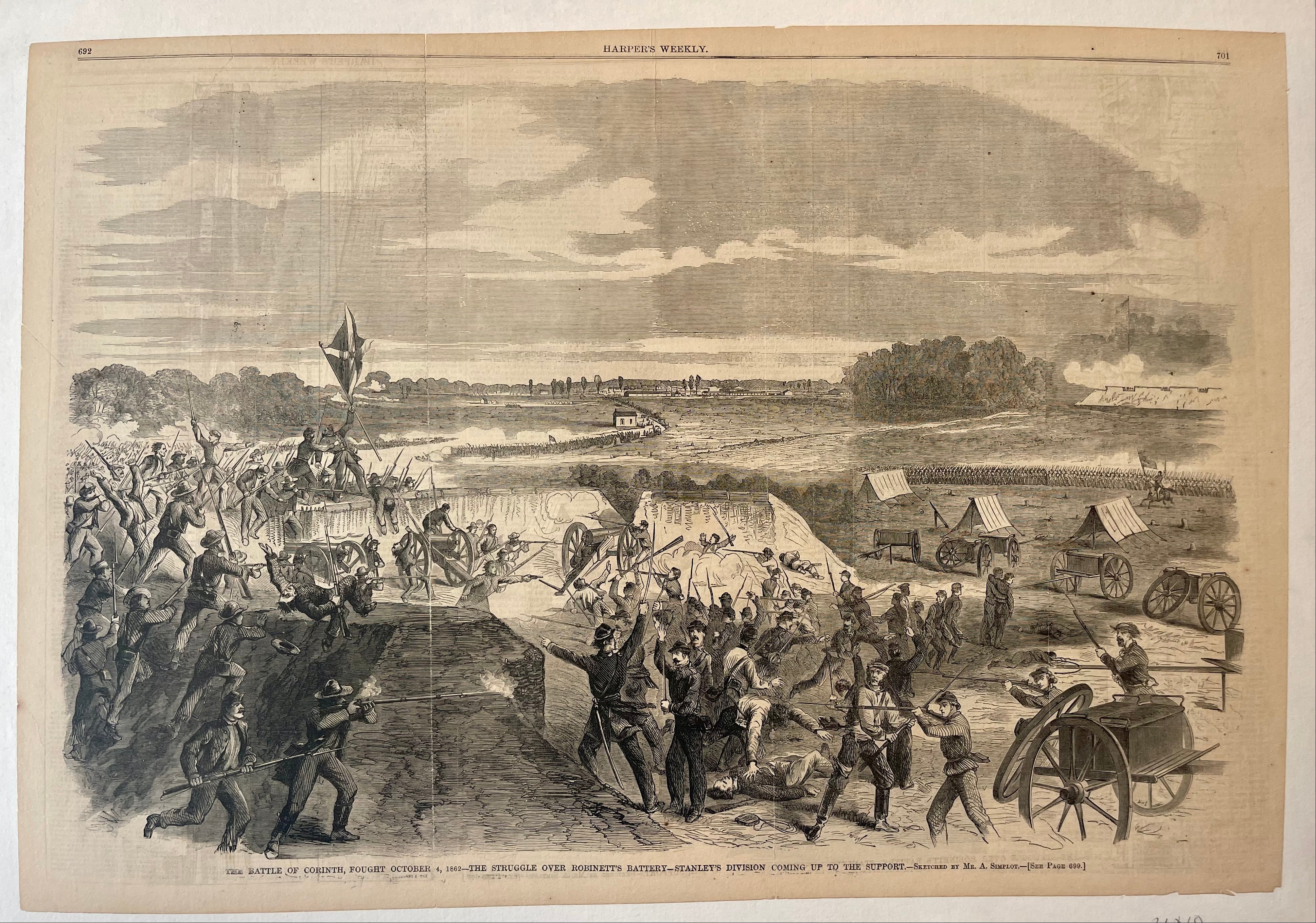 The siege of Corinth was a battle that took place during the American Civil War. Harper's Weekly published this detailed engraving of a scene the engagement, which notably took place at the junction of two railroad lines.