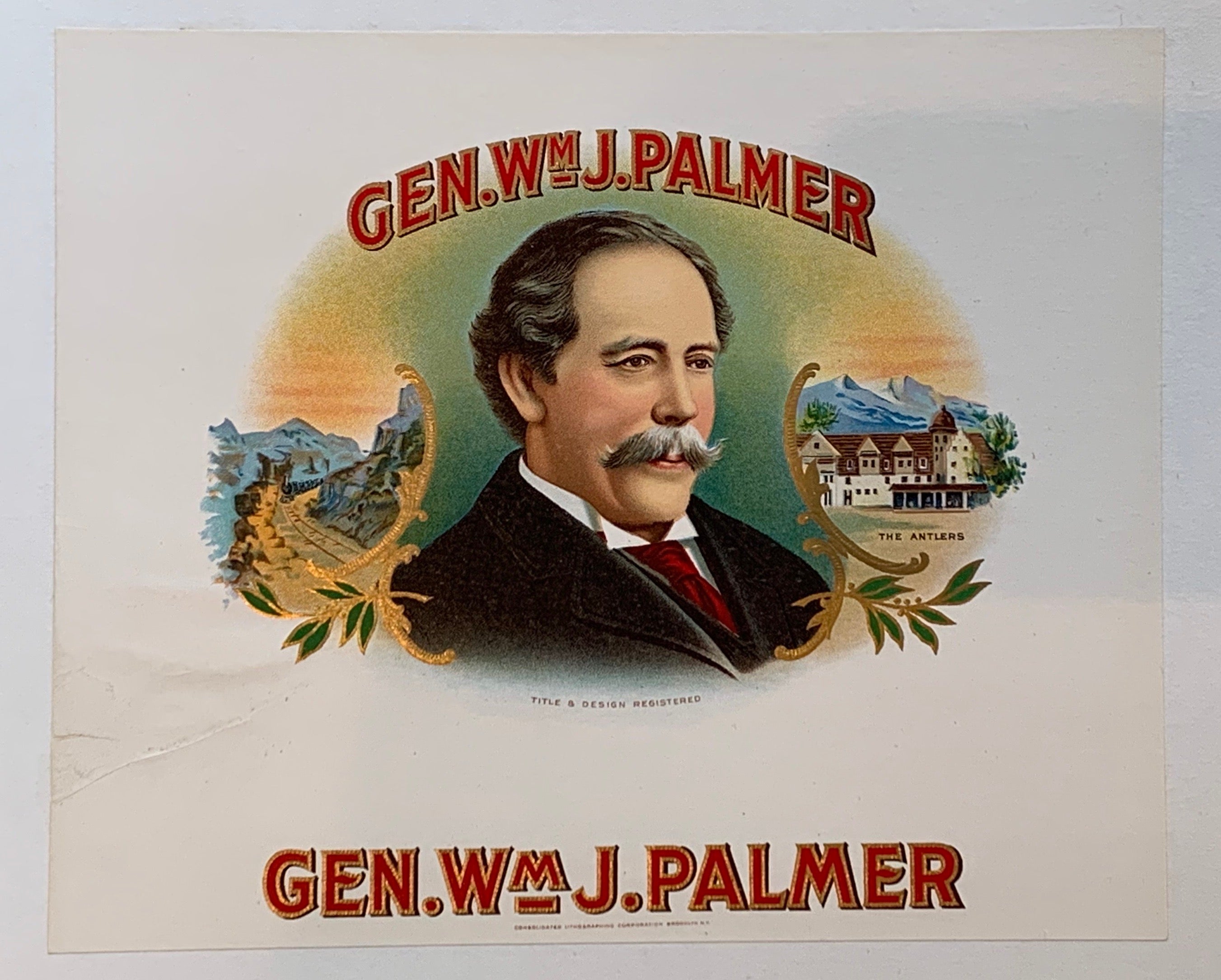 This portrait shows a Civil War engineer alongside two of his great accomplishments, one being the railroad, which he helped expand westward, the other being The Antlers hotel. He is known for founding the city of Colorado springs as a dry railroad town, and later building the grand Antlers hotel, which burnt down in 1898.