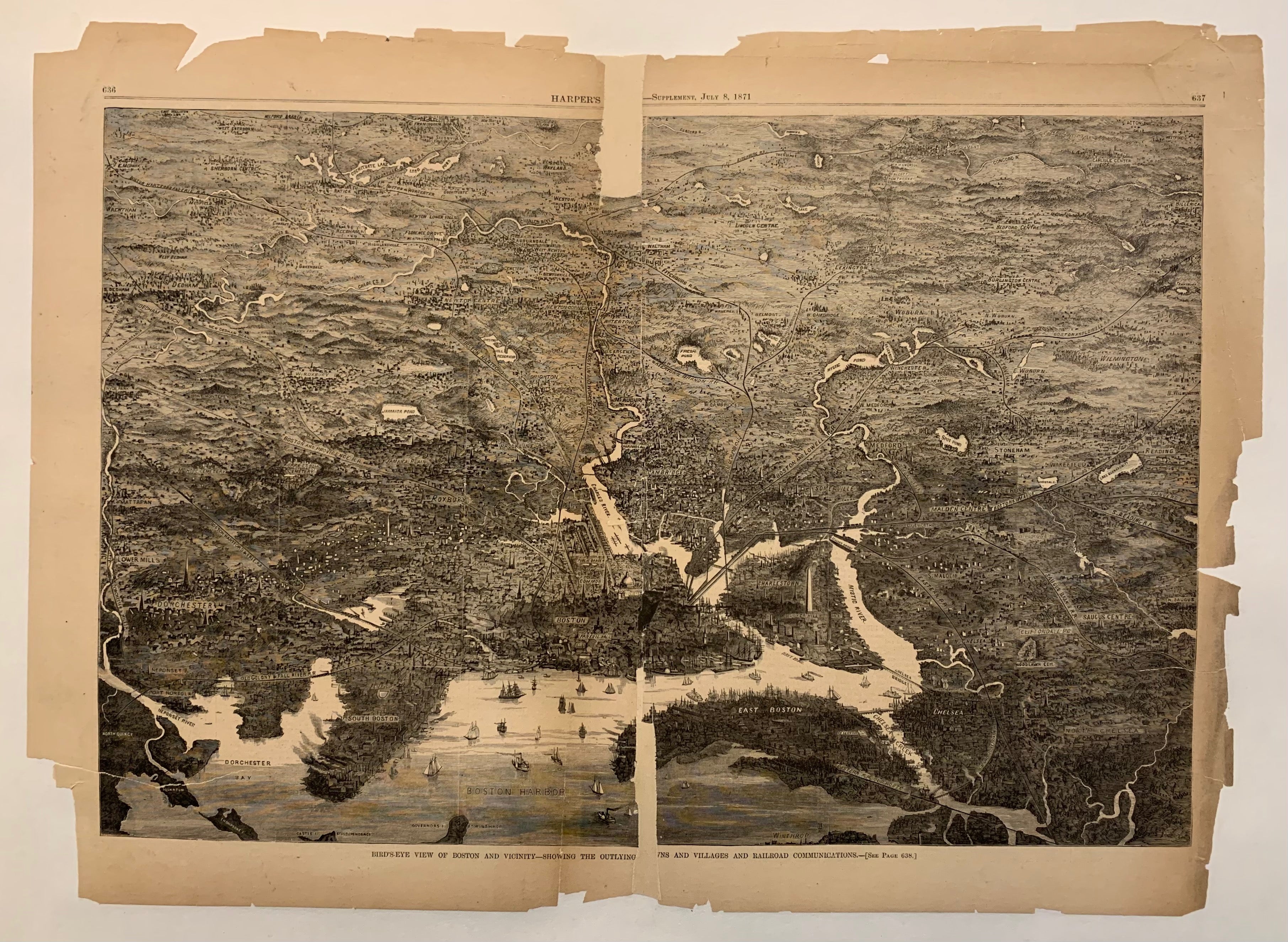 "Harper's Weekly - Supplement, July 8, 1871 / Birdseye View of Boston and Viinity. Showing the outlying towns and villages and railroad communications."