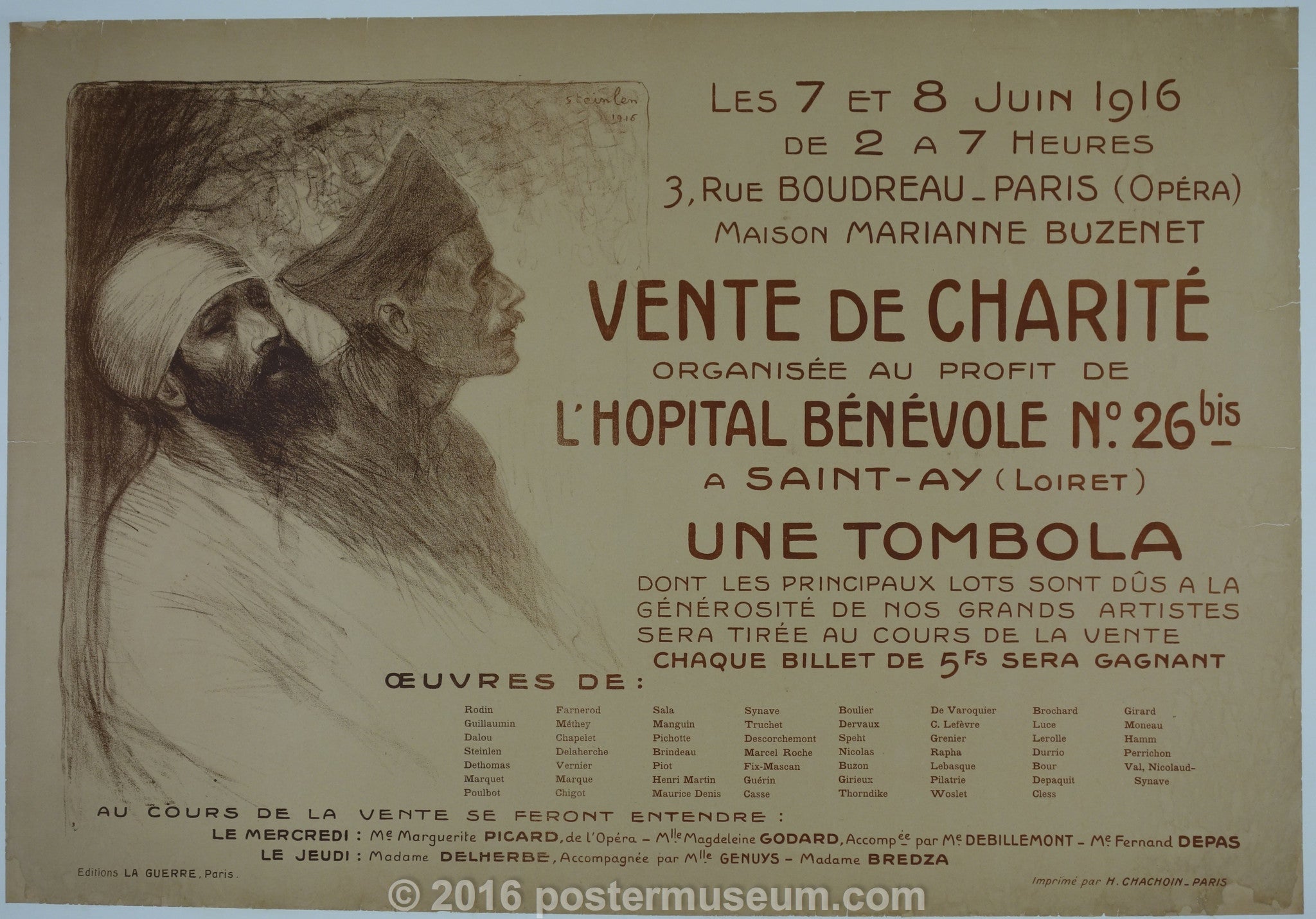 1916 500-1000 artists c. 1910 charity sale FR France FR WWI french horizontal injuriy Original recovery size-31-5x45-5 soldier Steinlen vintage poster War world war one ww1 WWI