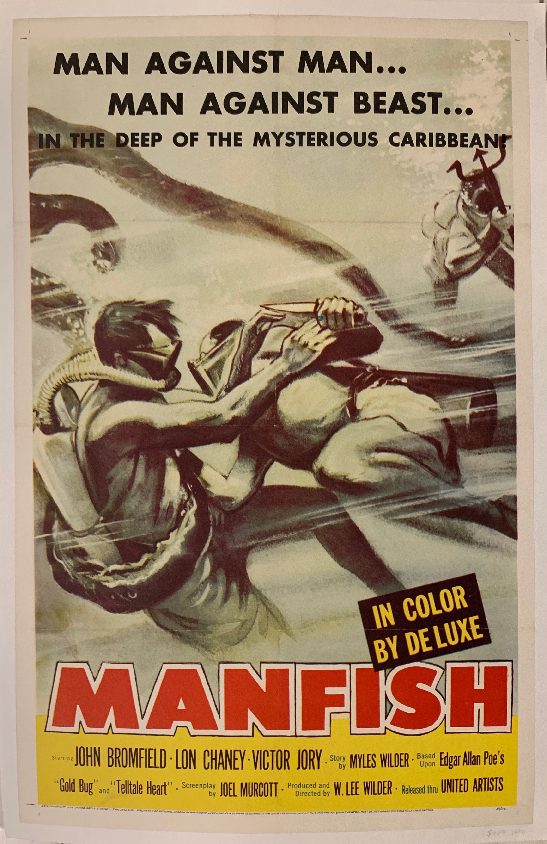 Man against man... man against beast... in the deep of the mysterious Caribeean. Manfish vintage film poster.