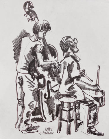 A Drummer and a Trumpeter Konstantin Bokov Charcoal Drawing Product Link