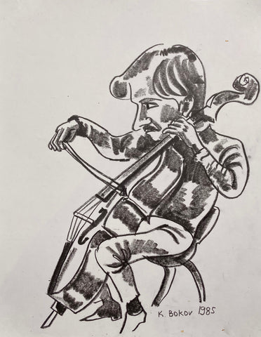 A Man and His Upright Bass Konstantin Bokov Charcoal Drawing Product Link