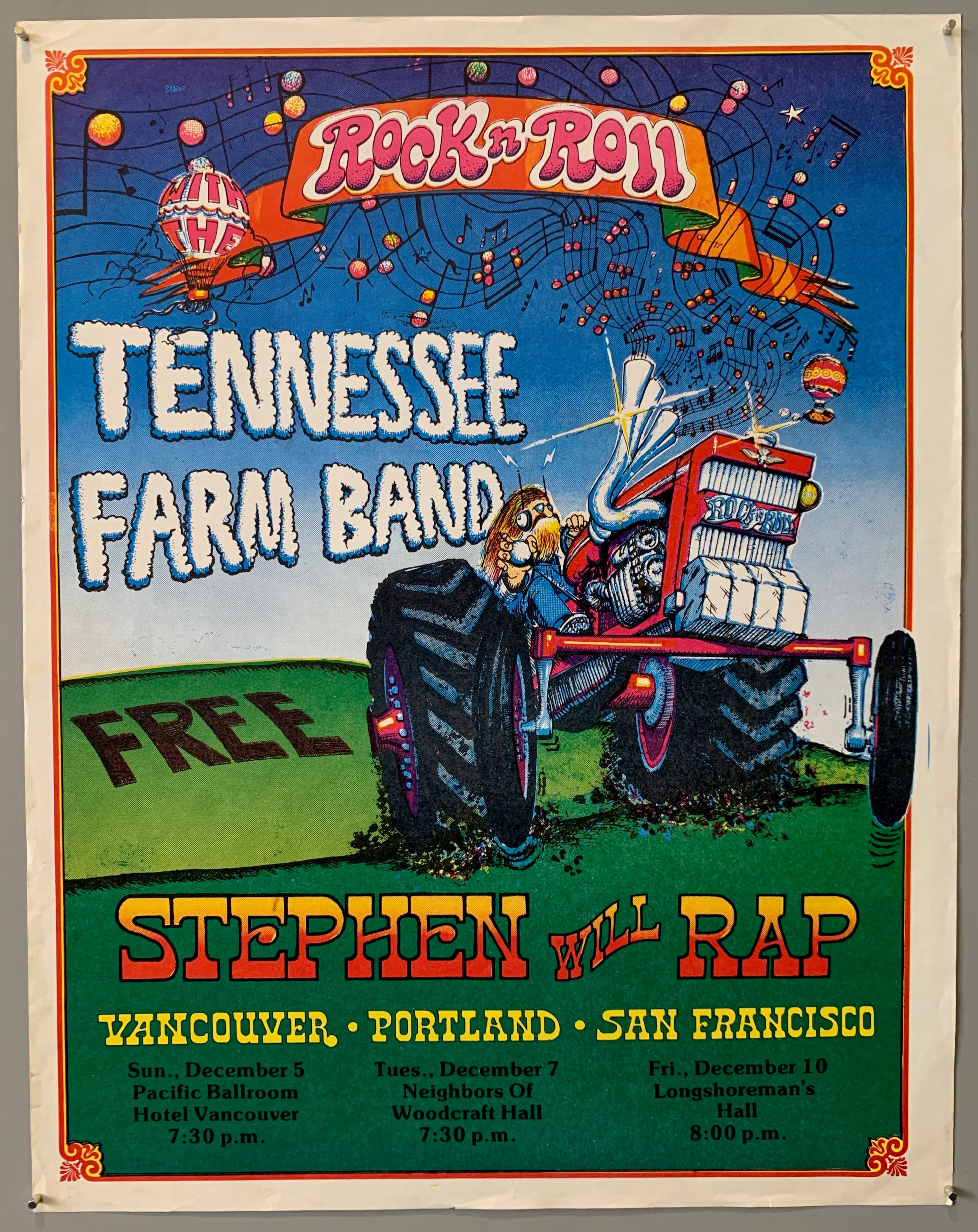 "Rock n Roll with the Tennessee Farm Band / Free / Stephen Will Rap / Vancouver, Portland, San Francisco"