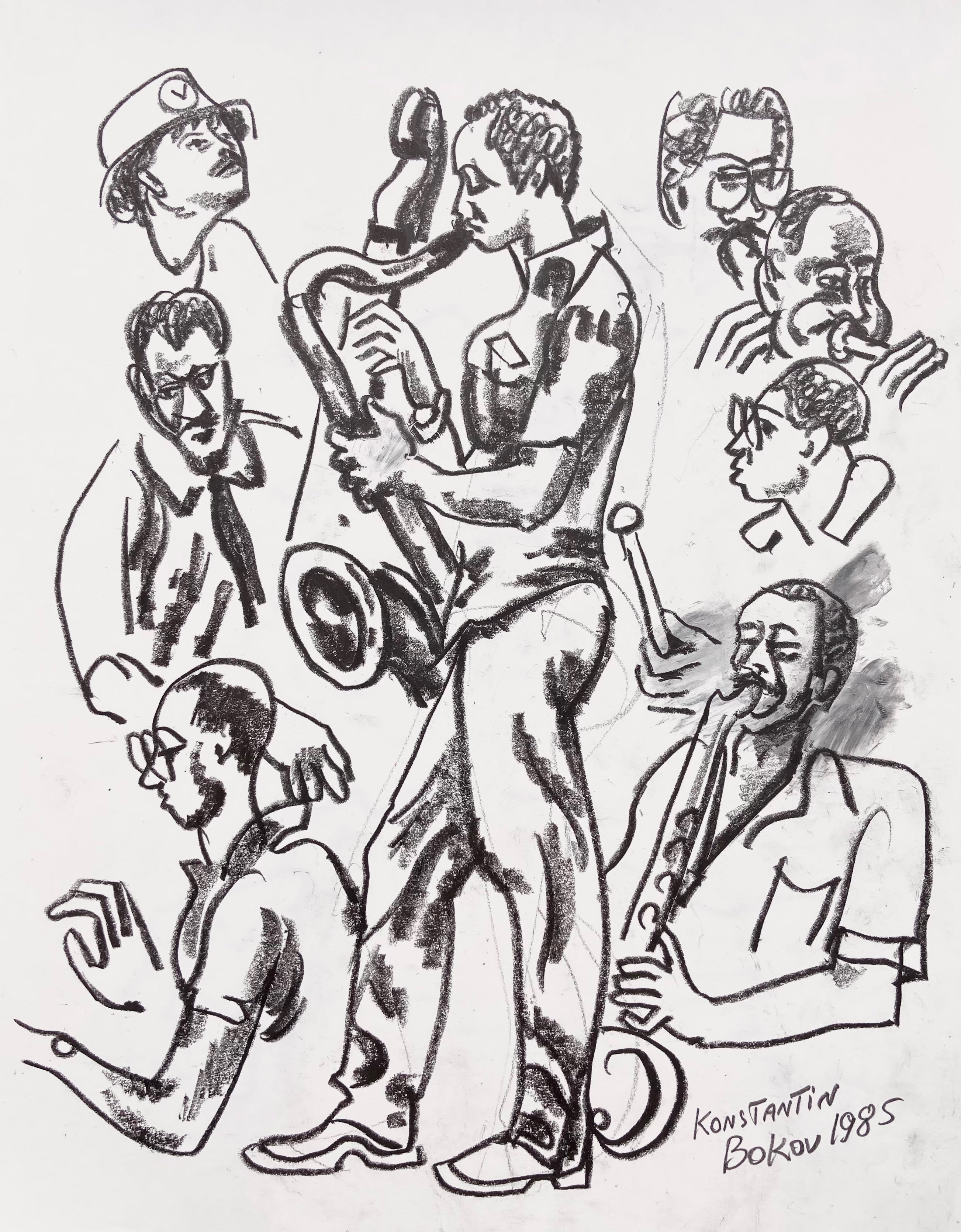 The Saxophonist Konstantin Bokov Charcoal Drawing