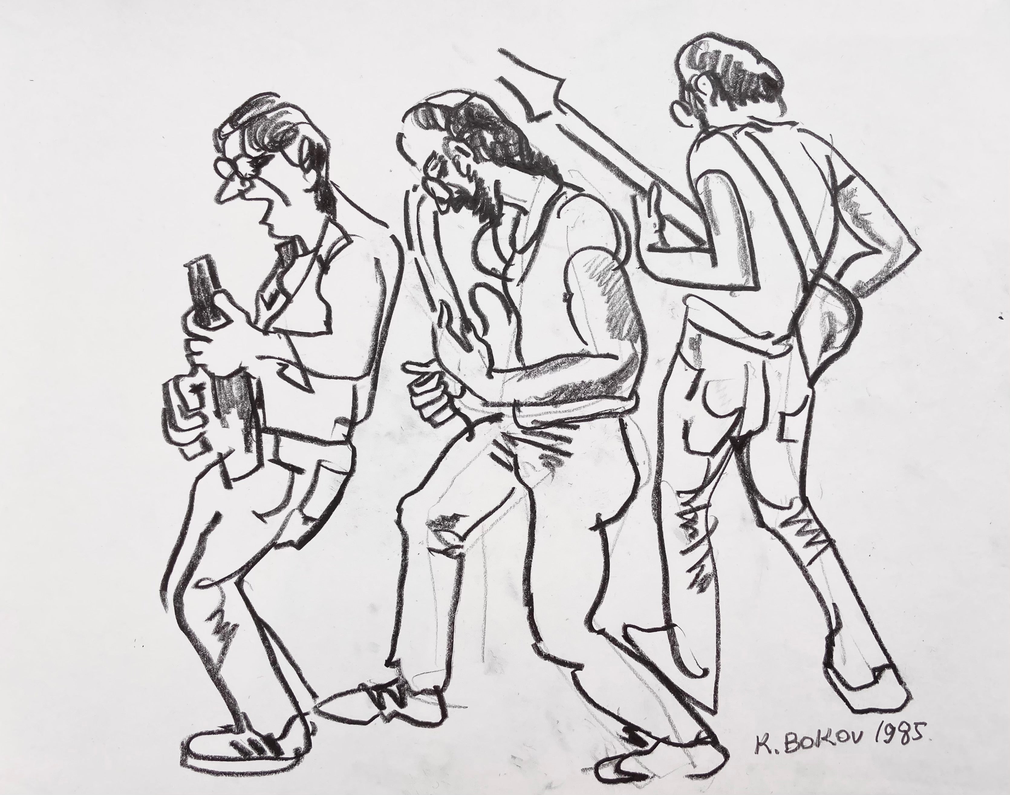 Konstantin Bokov is a Ukranian-American artist with a distinctly New York City influence. Bokov was born in 1940 in Shotska, Ukraine. A love for art ran in his family—his father is the renowned Soviet poet and songwriter Victor Bokov—and at their behest Bokov attended the Art Academy of Leningrad in St. Petersburg to study music. Upon graduating university Bokov moved to Moscow, and it was there that Bokov saw Van Gogh’s painting, Red Sunset. The painting was a transcendent experience, and it convinced Bokov that his future lay not in music but rather visual art. In 1974, Bokov immigrated to New York City and started his art career, creating paintings, found-object sculptures, and public installations. He was a member of the Rivington School, a movement that originated from the East Village art scene of the 80s. Bokov’s art feels like a window into this bygone era of the city, and scenes of everyday city life are common themes in his work.