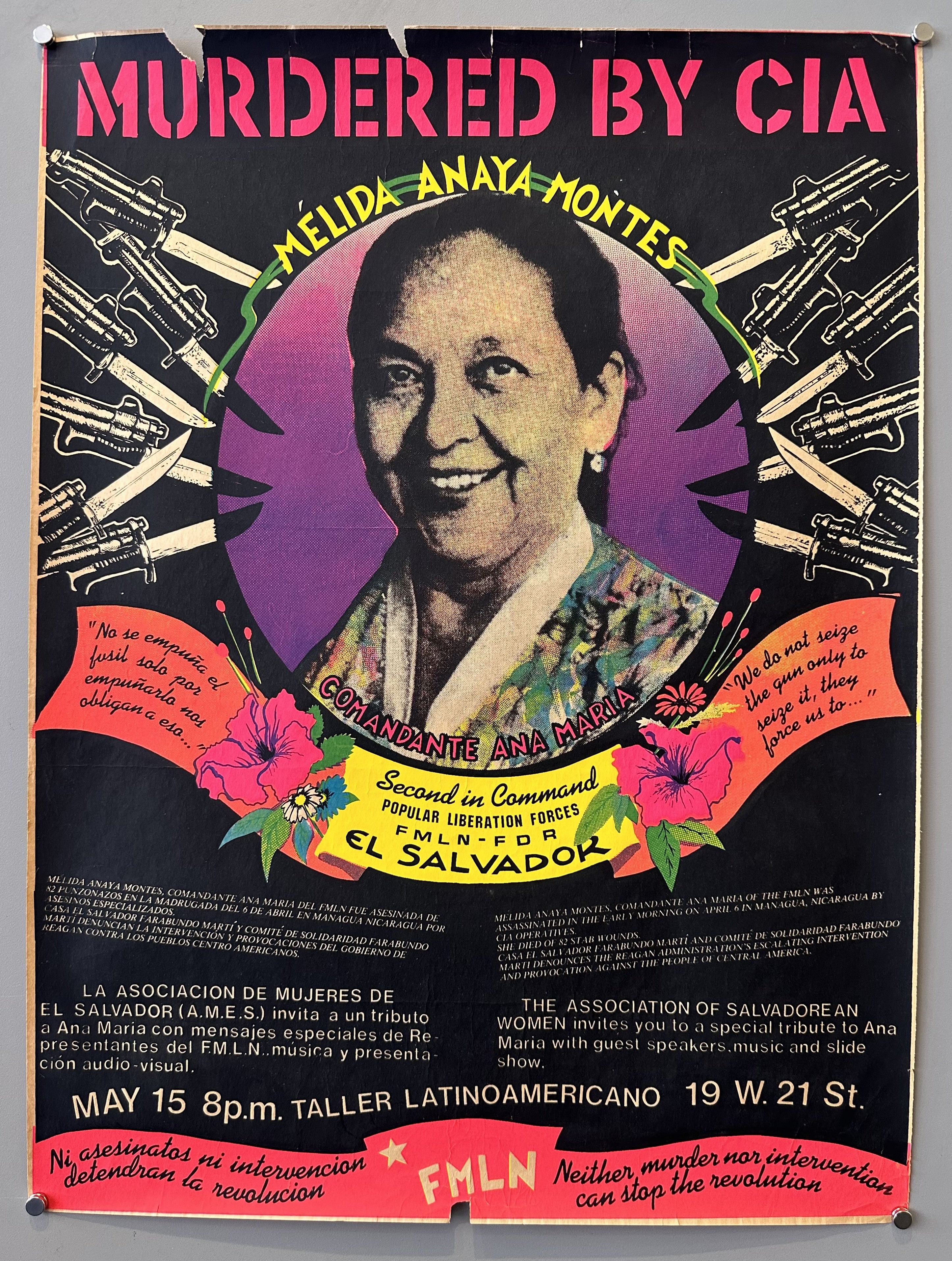 "Murdered by CIA / Mélida Anaya Montes / Comandante Ana Maria / Second in Command Popular Liberation Forces FMLN - FDR El Salvador / 'We do not seize the gun only to seize it, they force us to...'"