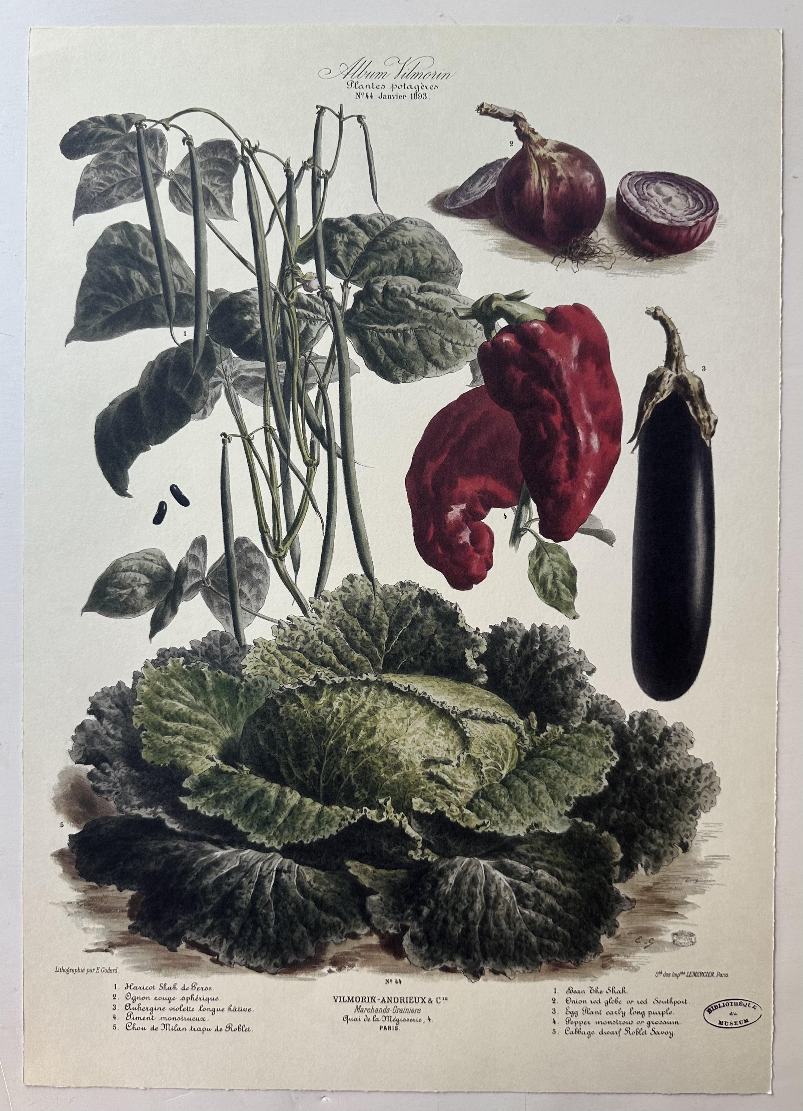 Vilmorin-Andrieux and Company was an important seed company that got its start from printing these plates in 1850, following the expertise of Philippe Victoire de Vilmorin, a merchant and botanist, and his father-in-law Pierre Andrieux, official botanist to the King of France. The company contributed to the advancement of botany and agronomic knowledge of the time. Elisa Champin originally painted and engraved these plates.